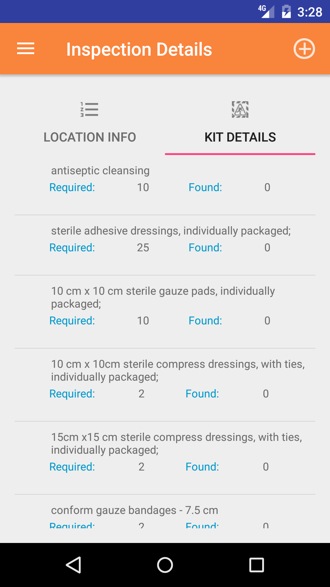 - Tap the third tab on the menu, the First Aid Kit Inspection view.