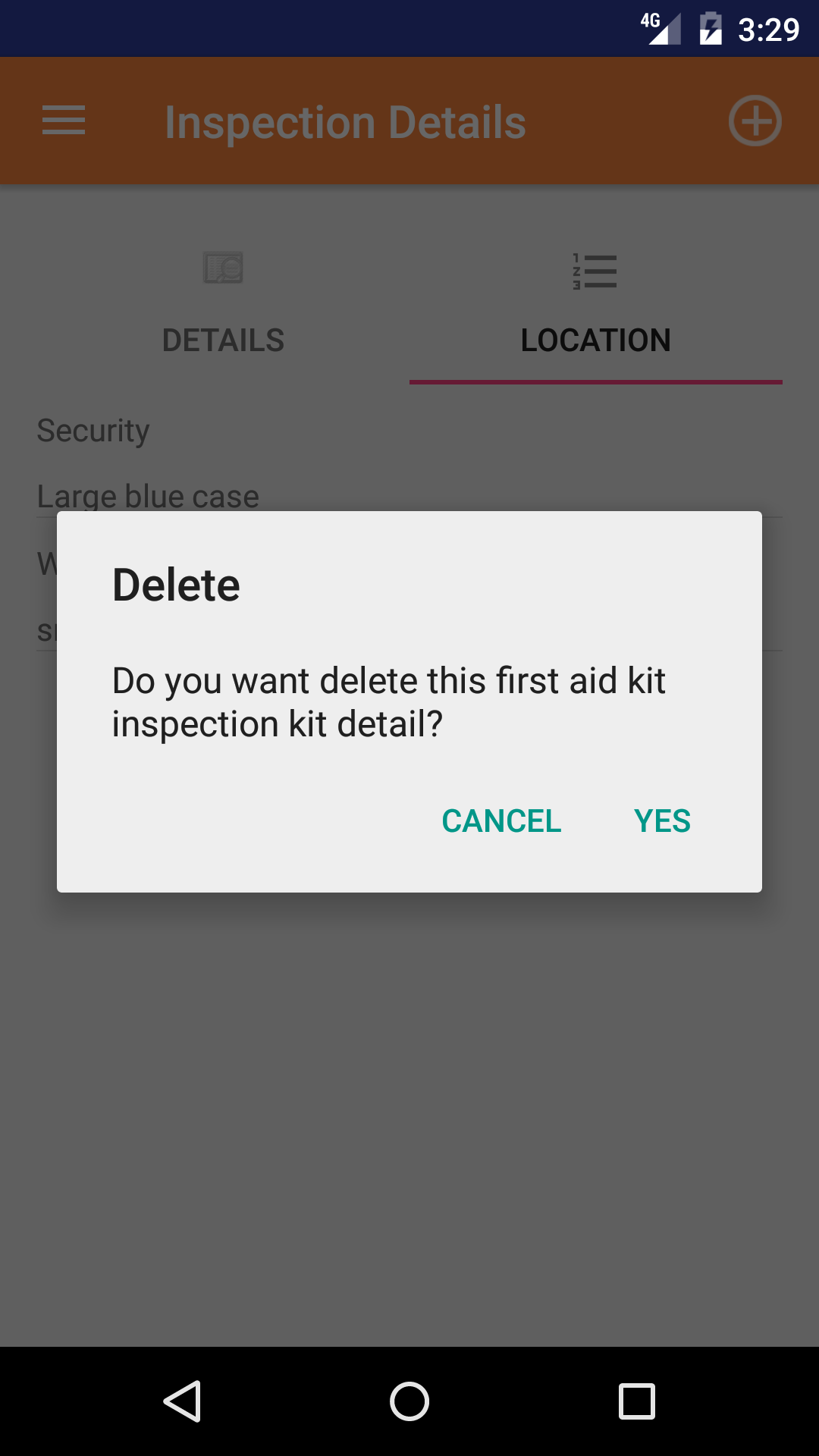 - Tap the Delete button. The first aid kit inspection will be deleted.