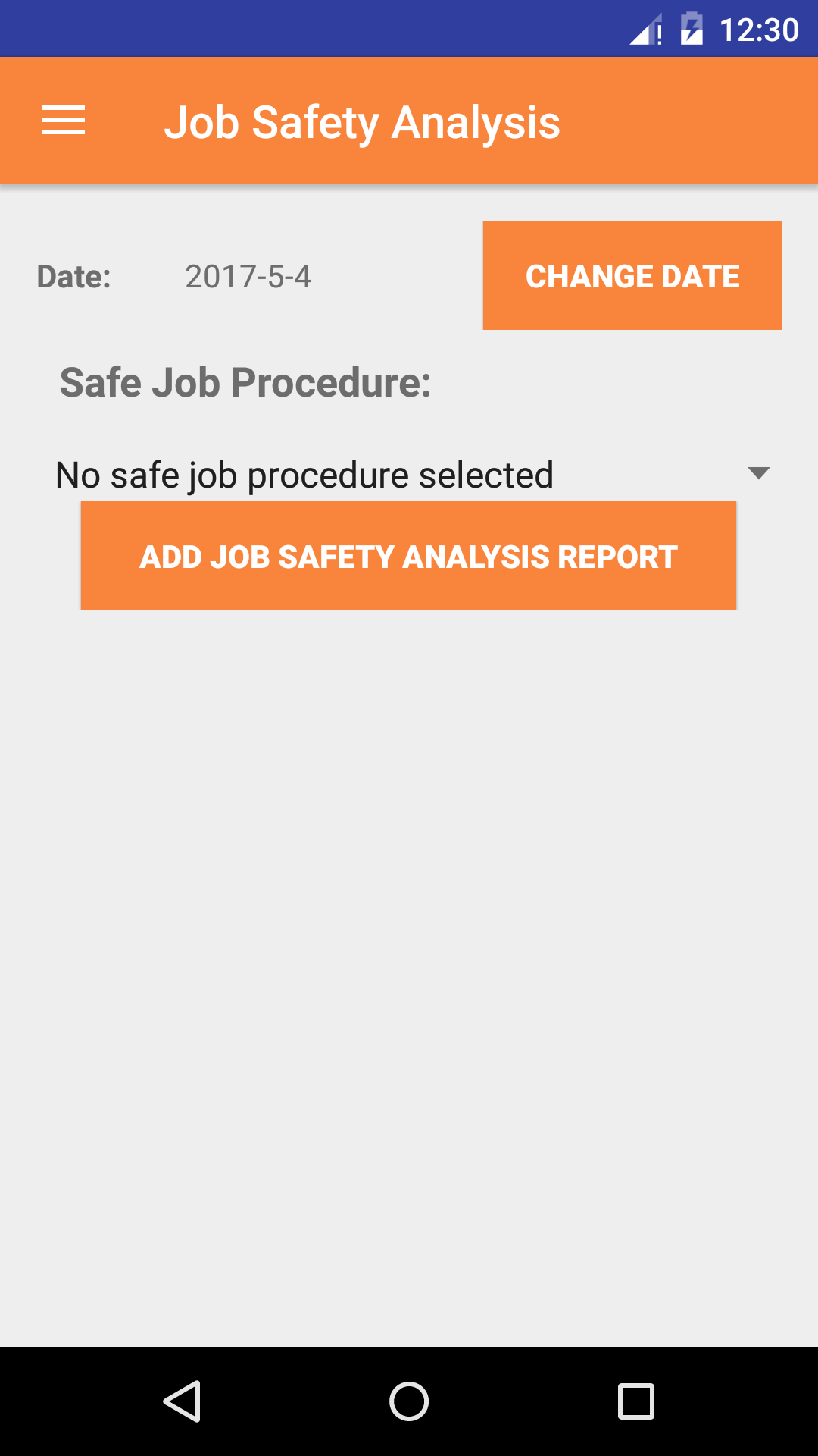 - Then tap on the Job Safety Analysis button to open the Choose Add Job Safety Analysis screen. The Three options are: