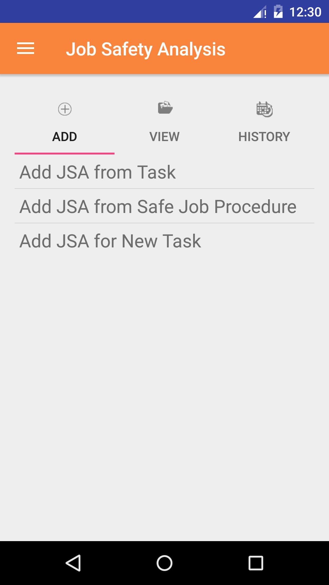 - Tap the second tab on the menu, the Job Safety Analysis view.