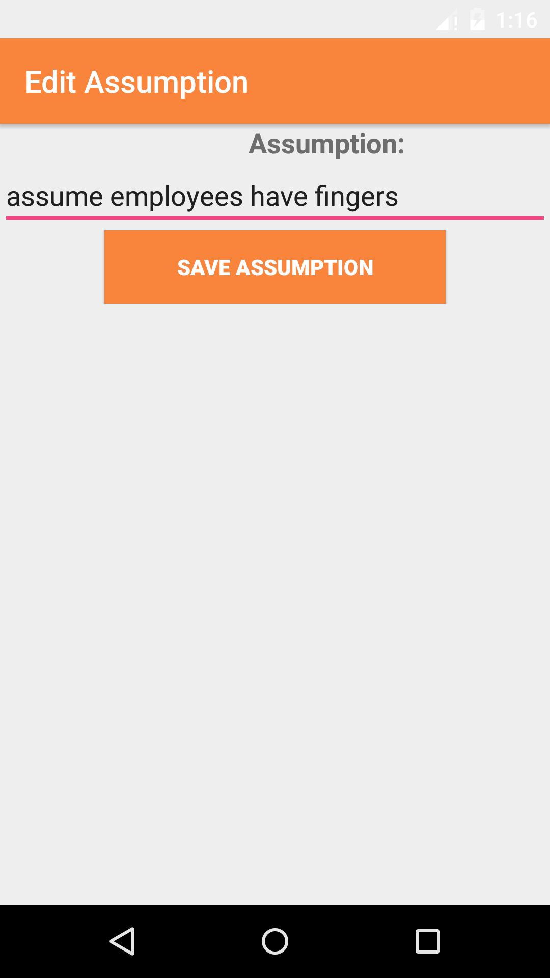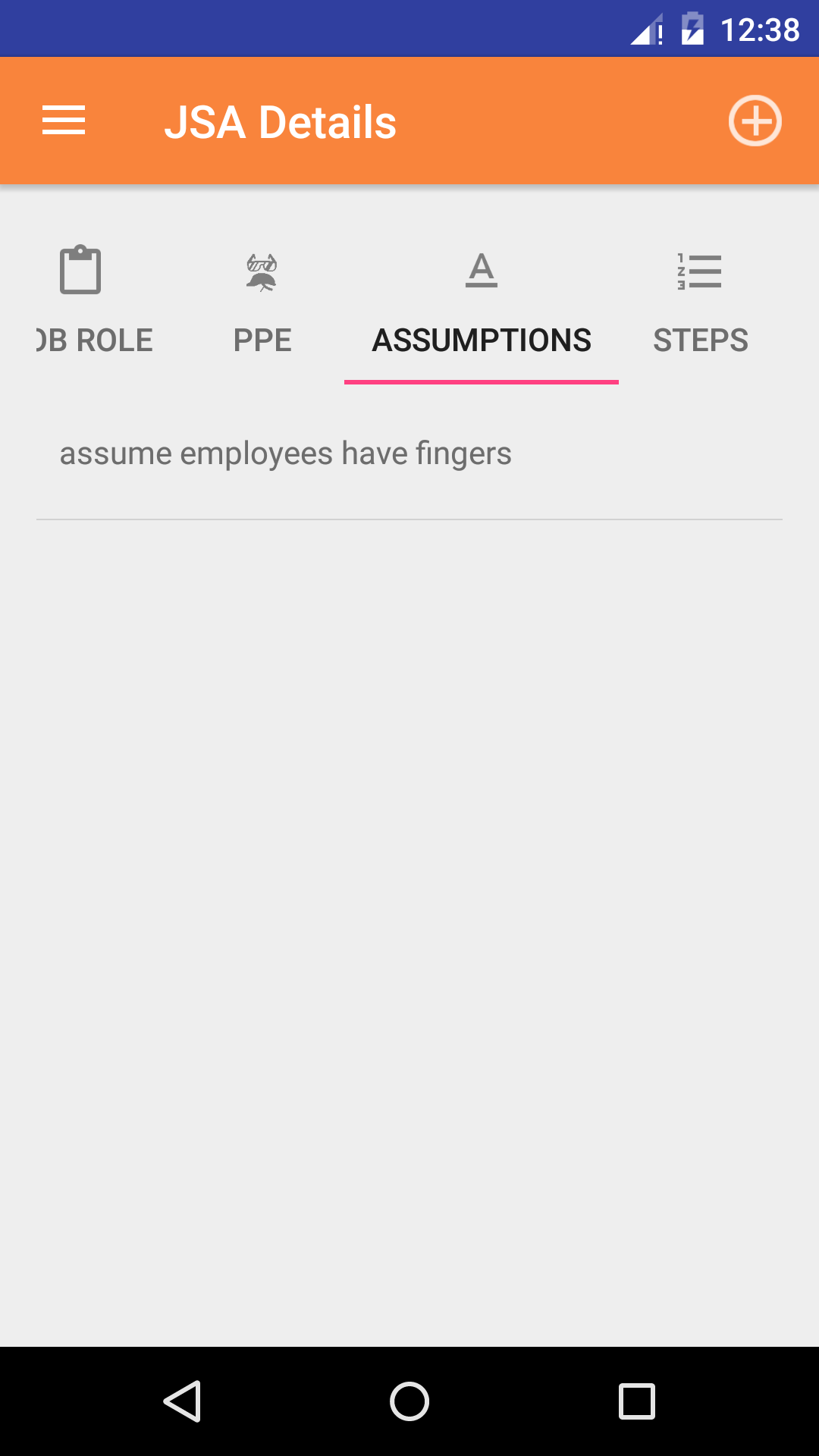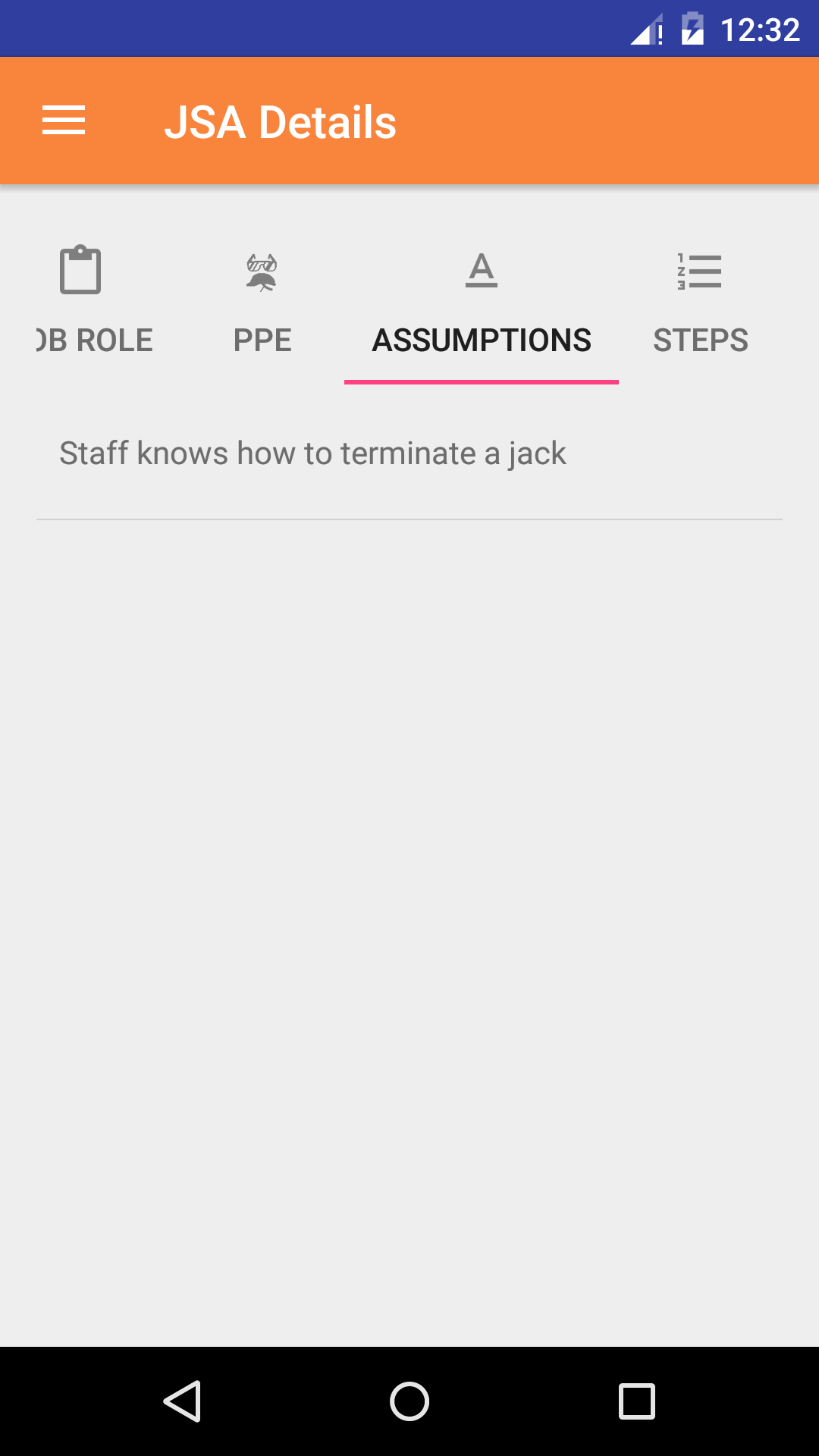 - Tap the fifth tab, the Assumption tab of the History view. This loads the list of the assumption that were added for the Job Safety Analysis.
