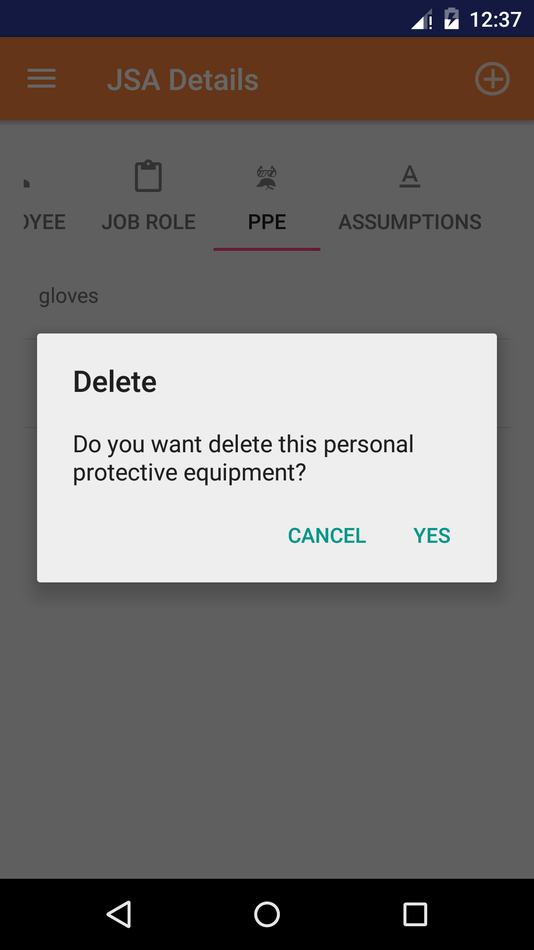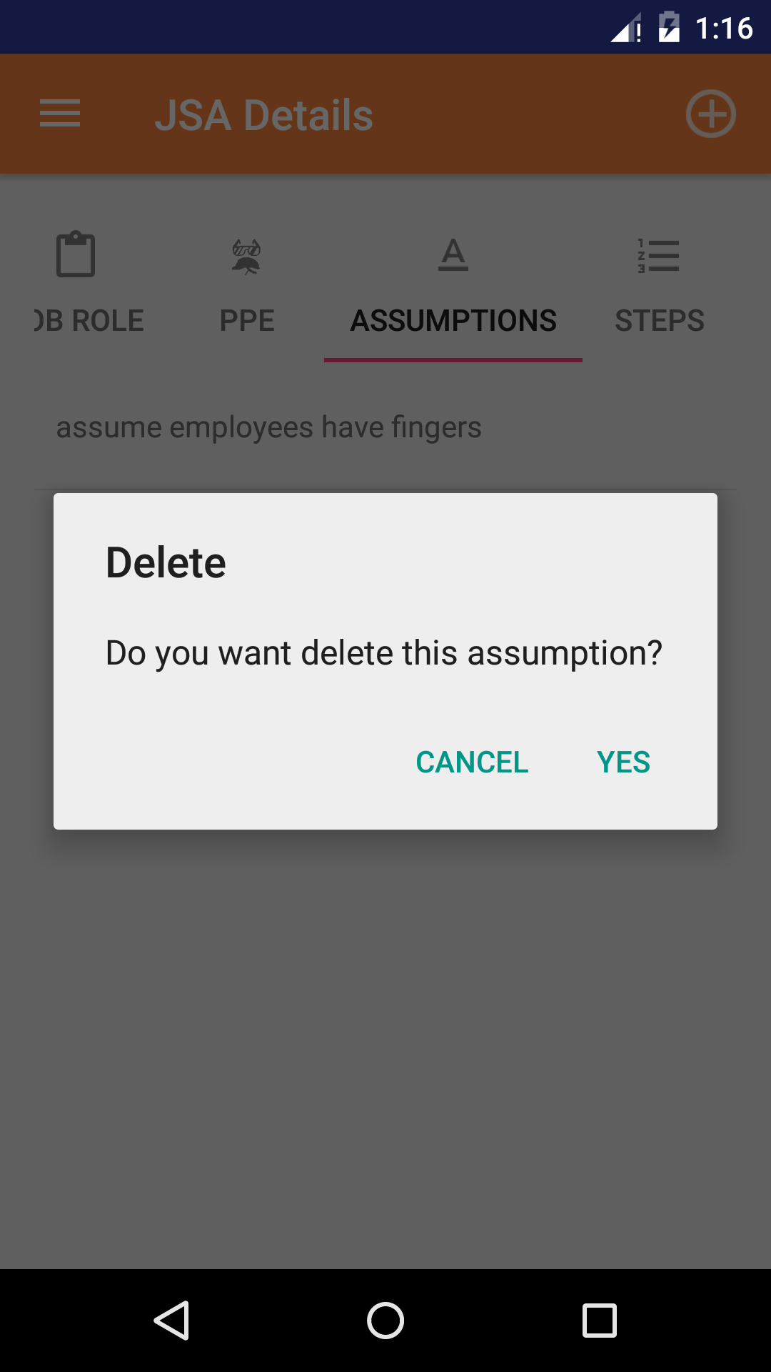 - Tap the Delete button. The plan for elimination will be deleted from the job safety analysis.