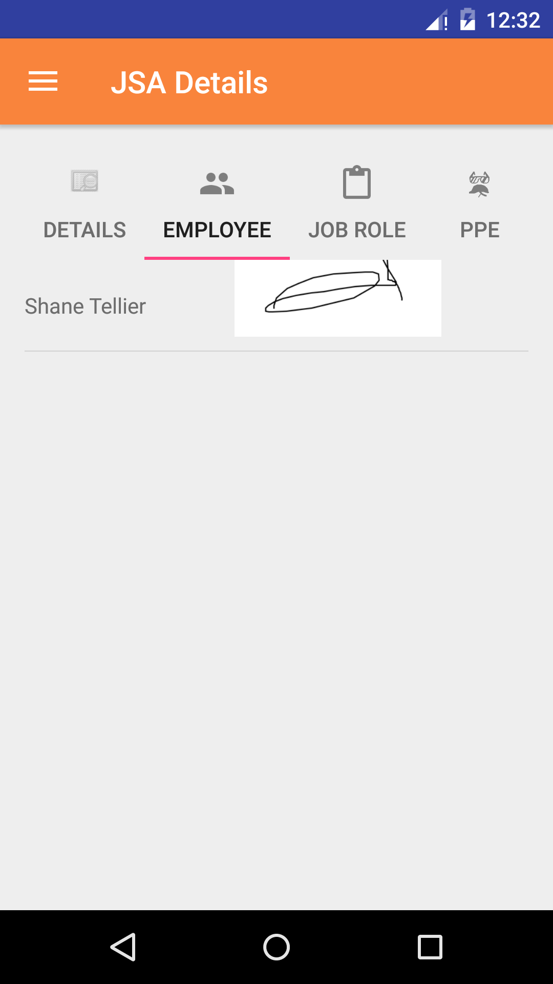 - Tap the third tab, the Job Role tab of the History view. This loads the list of the job roles that were added for the Job Safety Analysis.