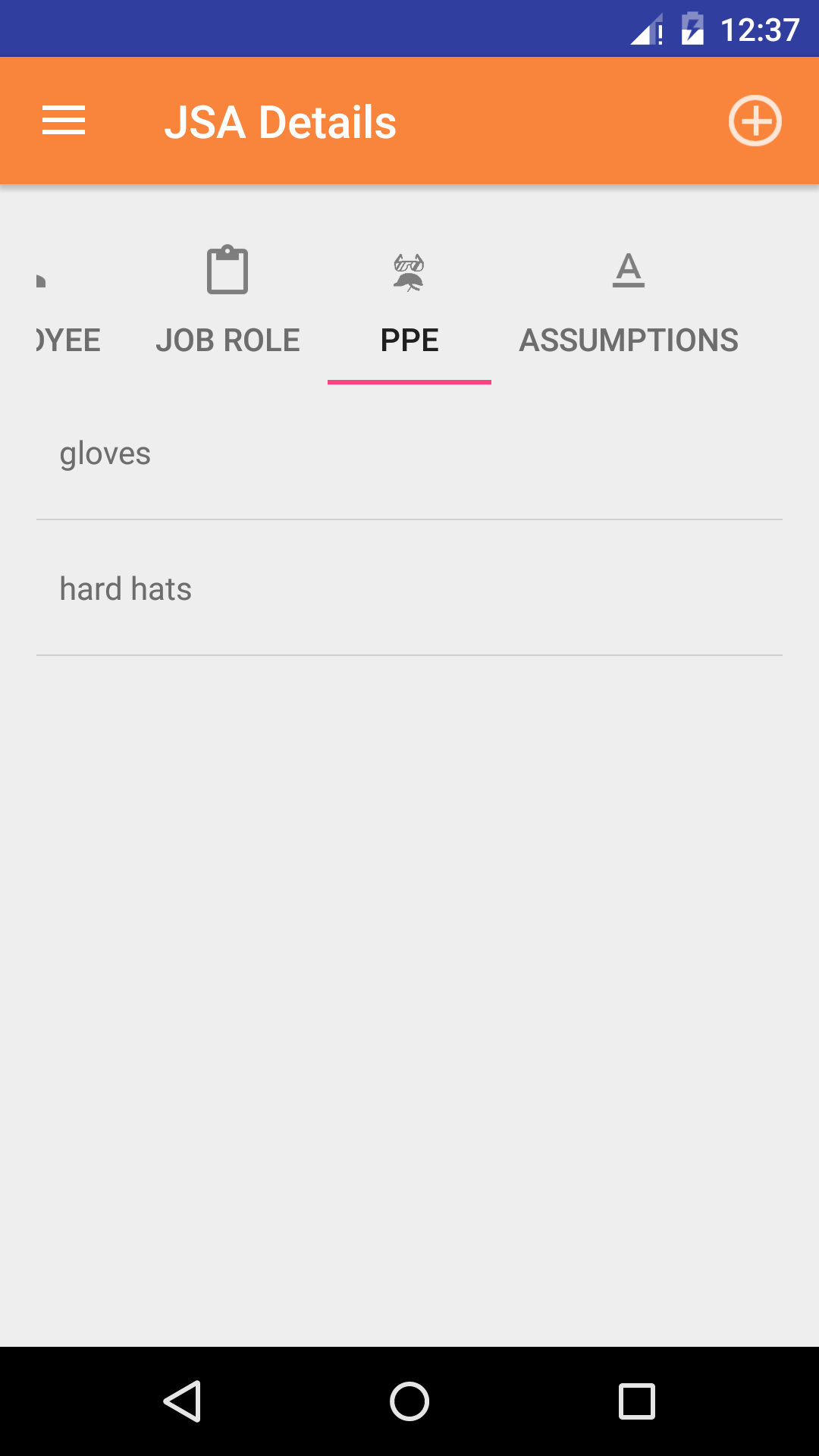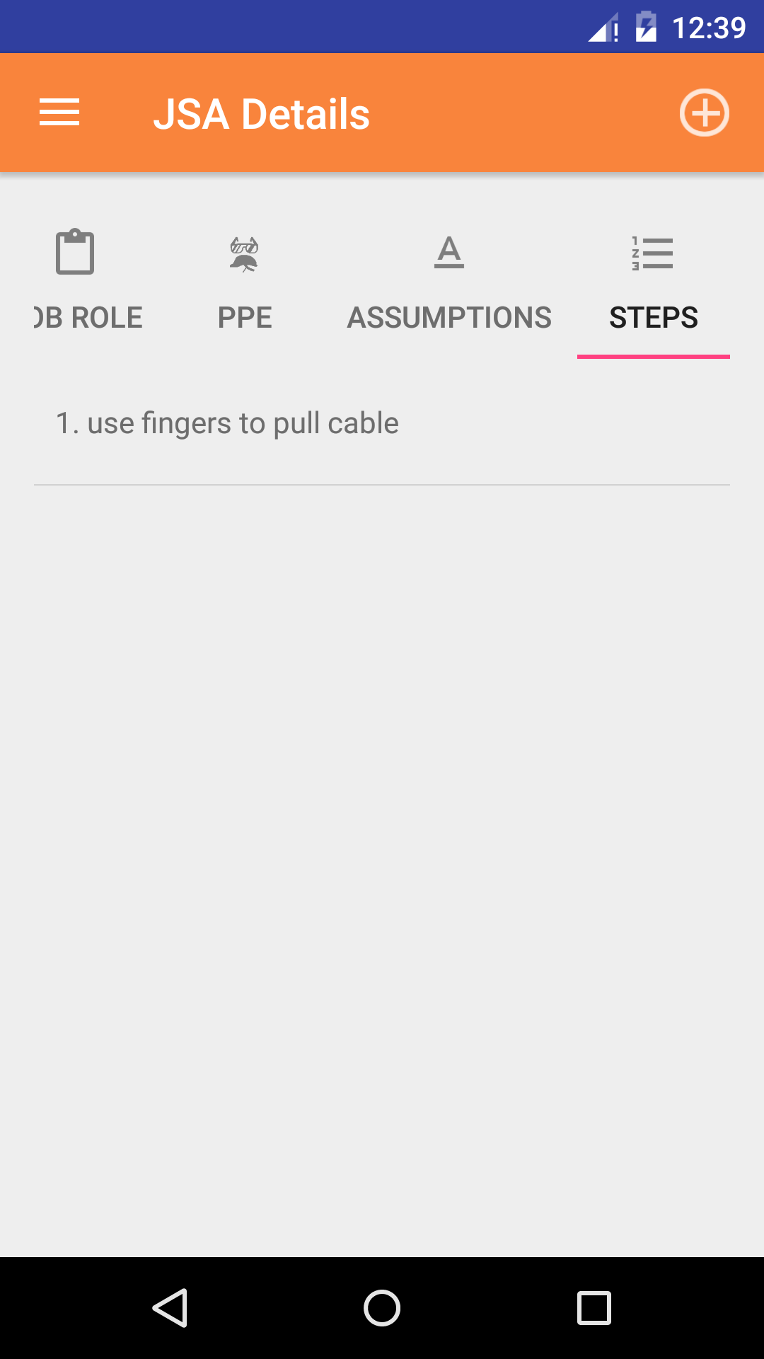 - Tap the + icon in the top right corner to add the Job Safety Analysis.
