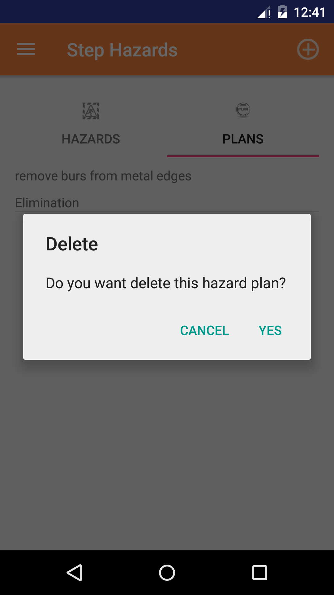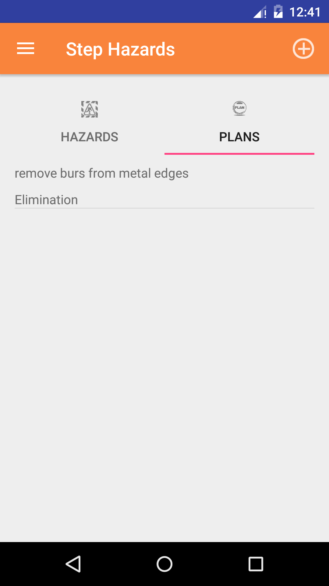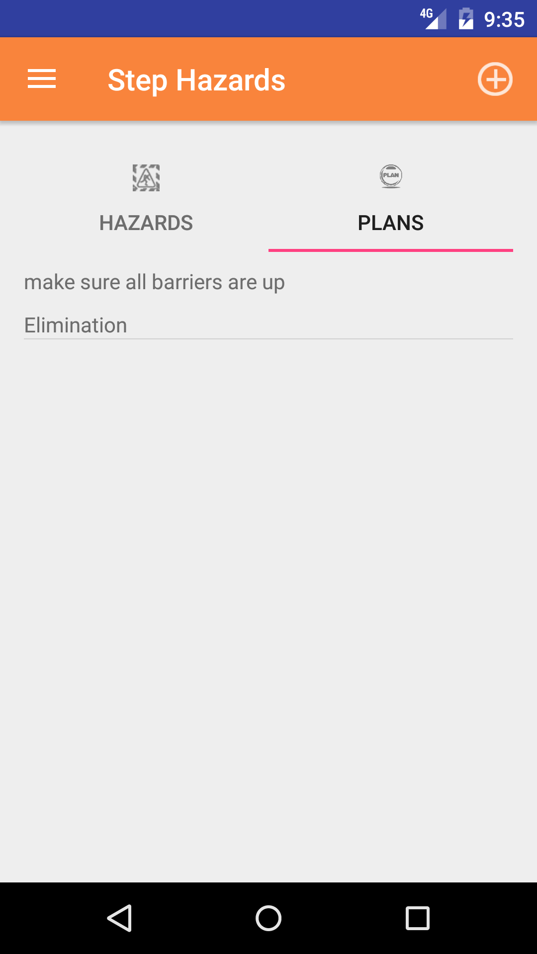 - Tap on the second tab, the plans for elimination tab of the edit step hazard view.