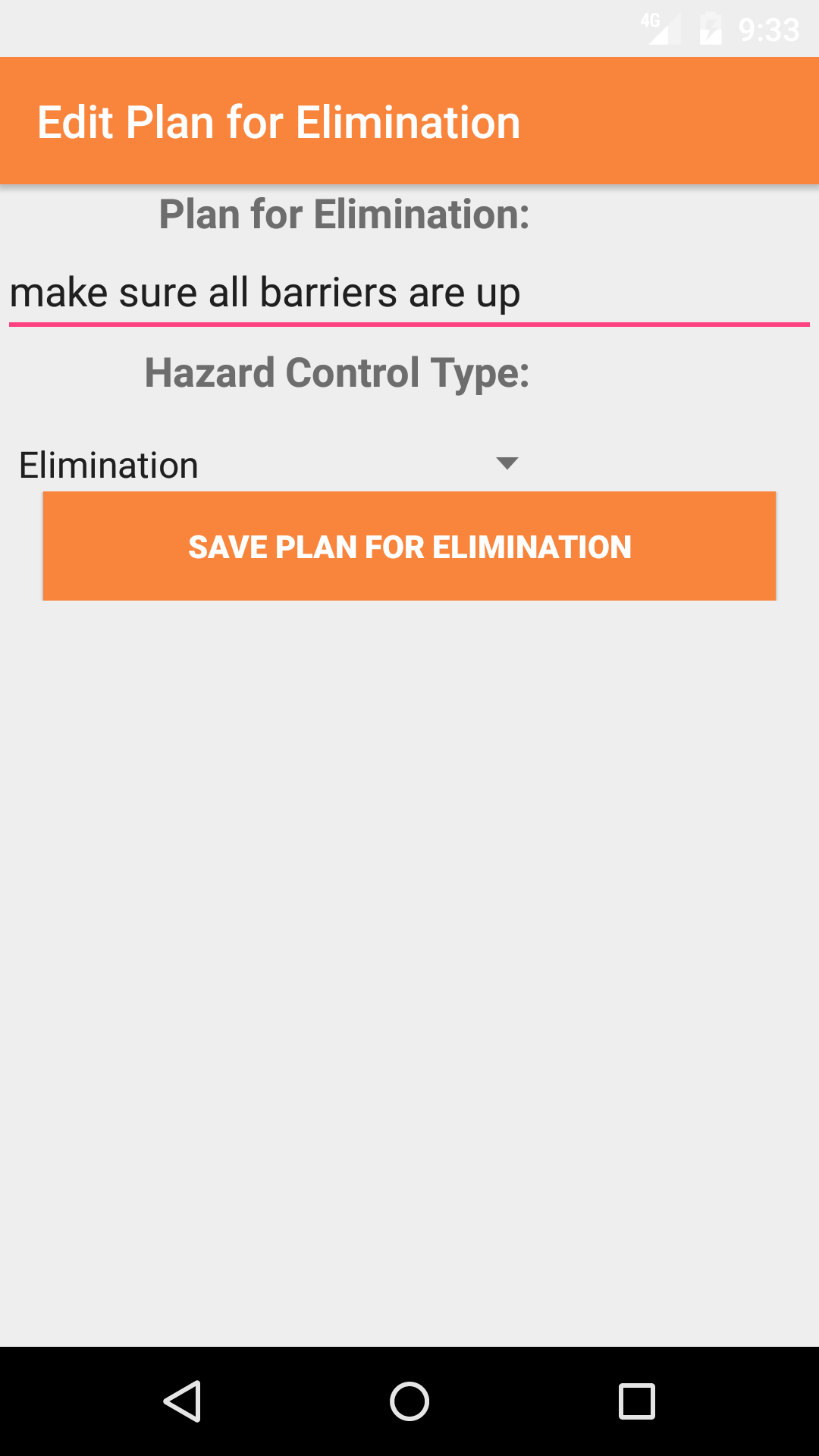 - Tap Save Plan for Elimination button to edit the plan for elimination for the step hazard for the task.