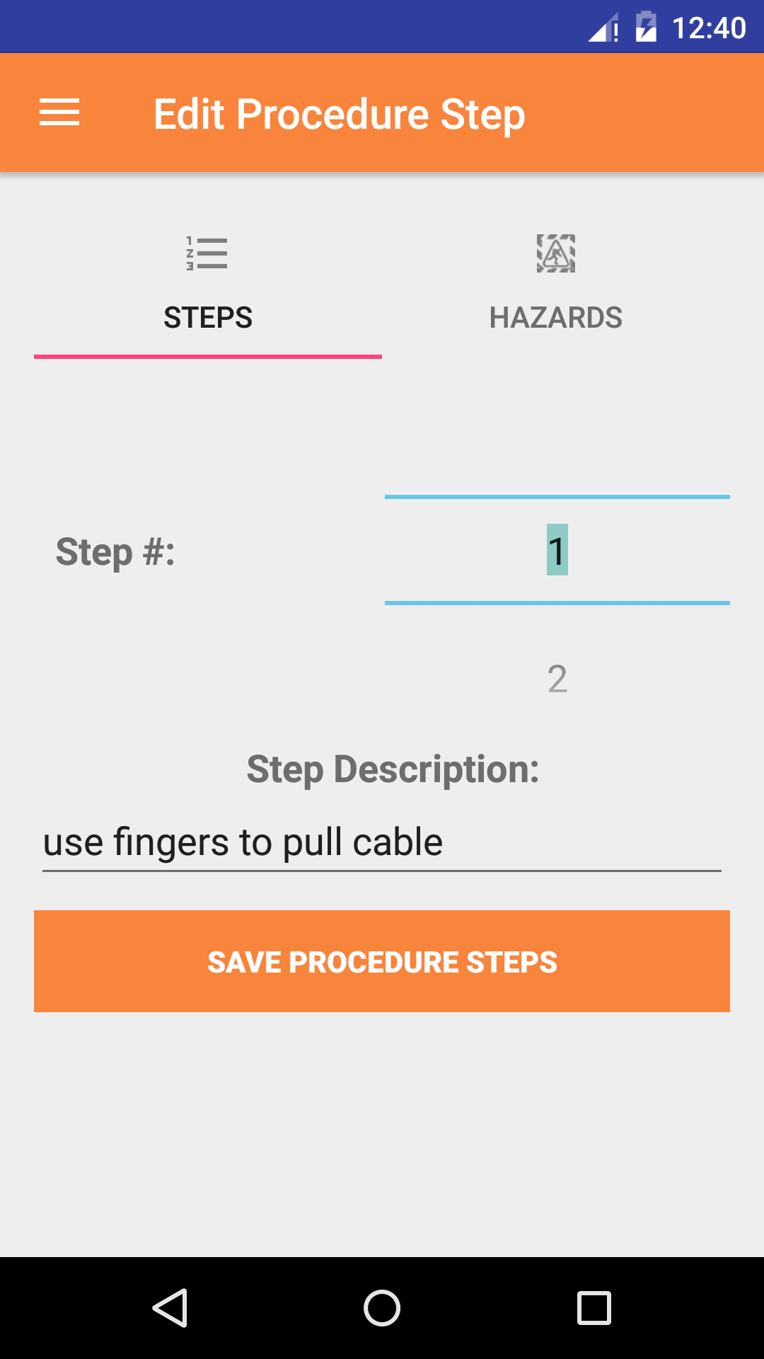 - Tap on the second tab, the step hazard tab of the edit task view.