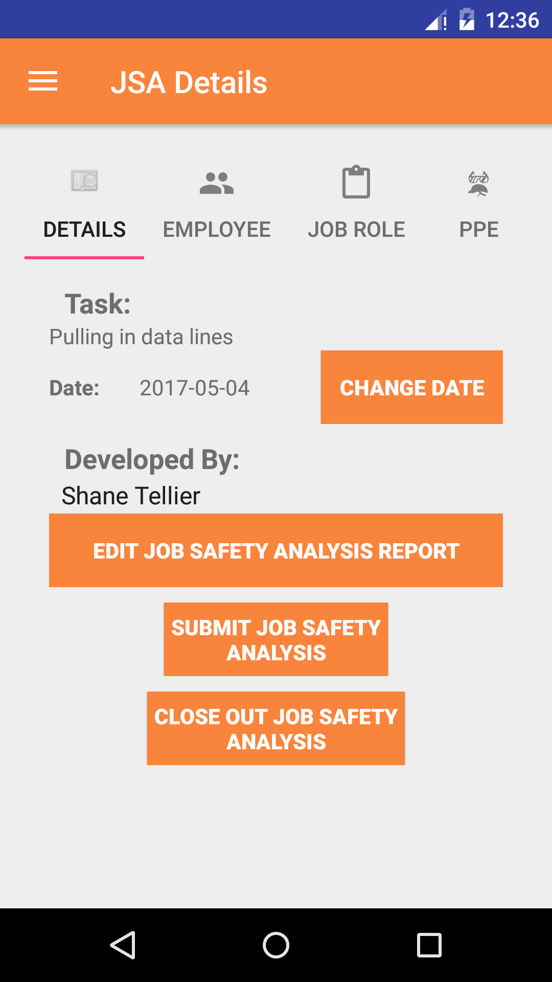 Once the Job Safety Analysis details have been entered, the employees added, the list of steps/ step hazards and plans for elimination edited to