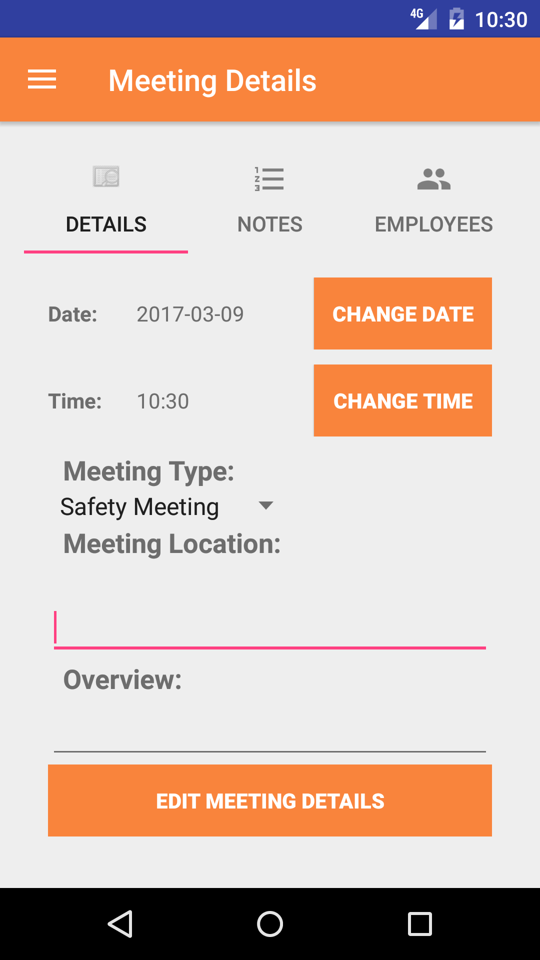 - Tap the Close Out Meeting button. All information on the Meeting will be sent to the Web Application and the meeting