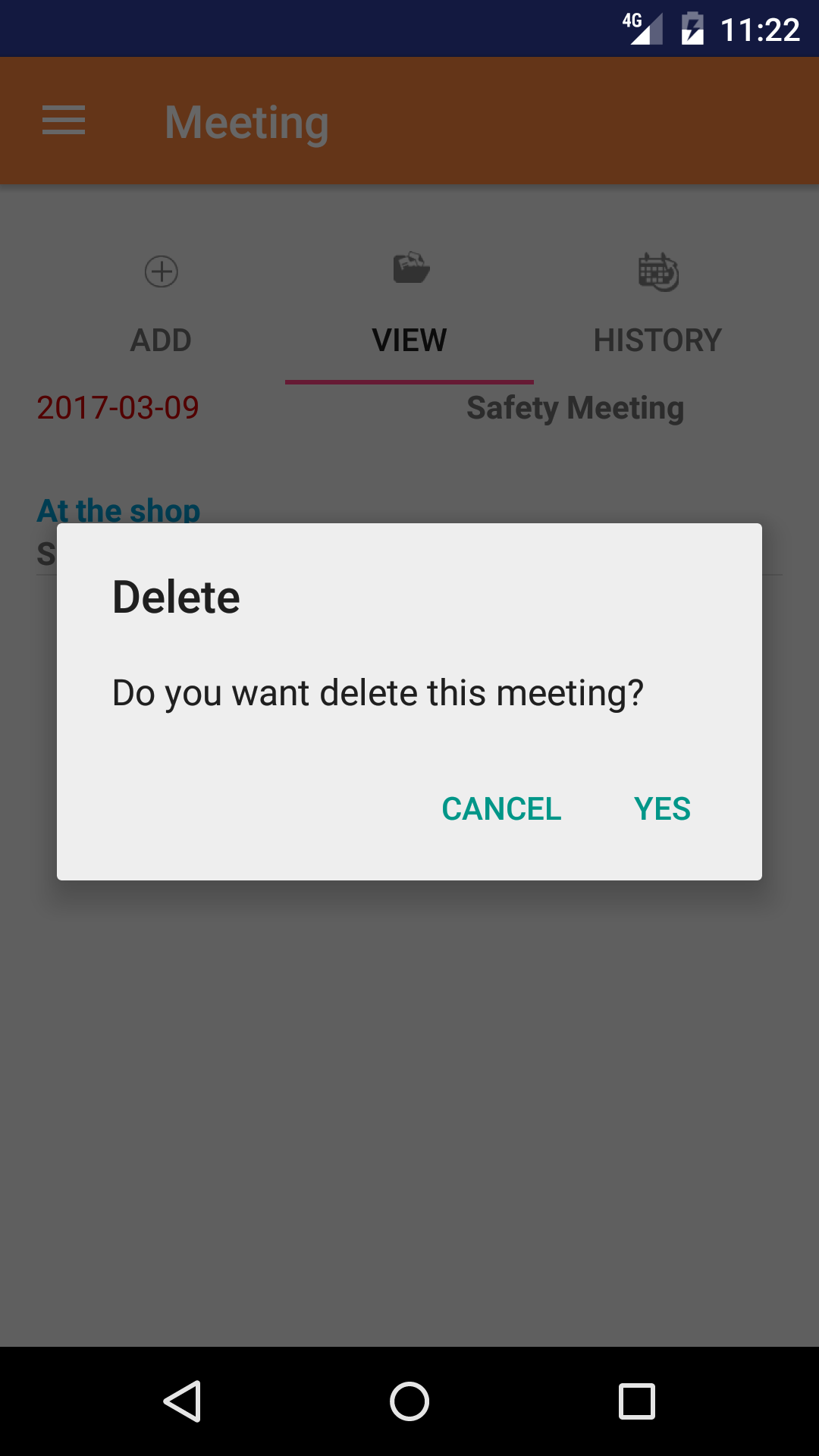 - Tap the Delete button. The meeting will be deleted from the Android Application.