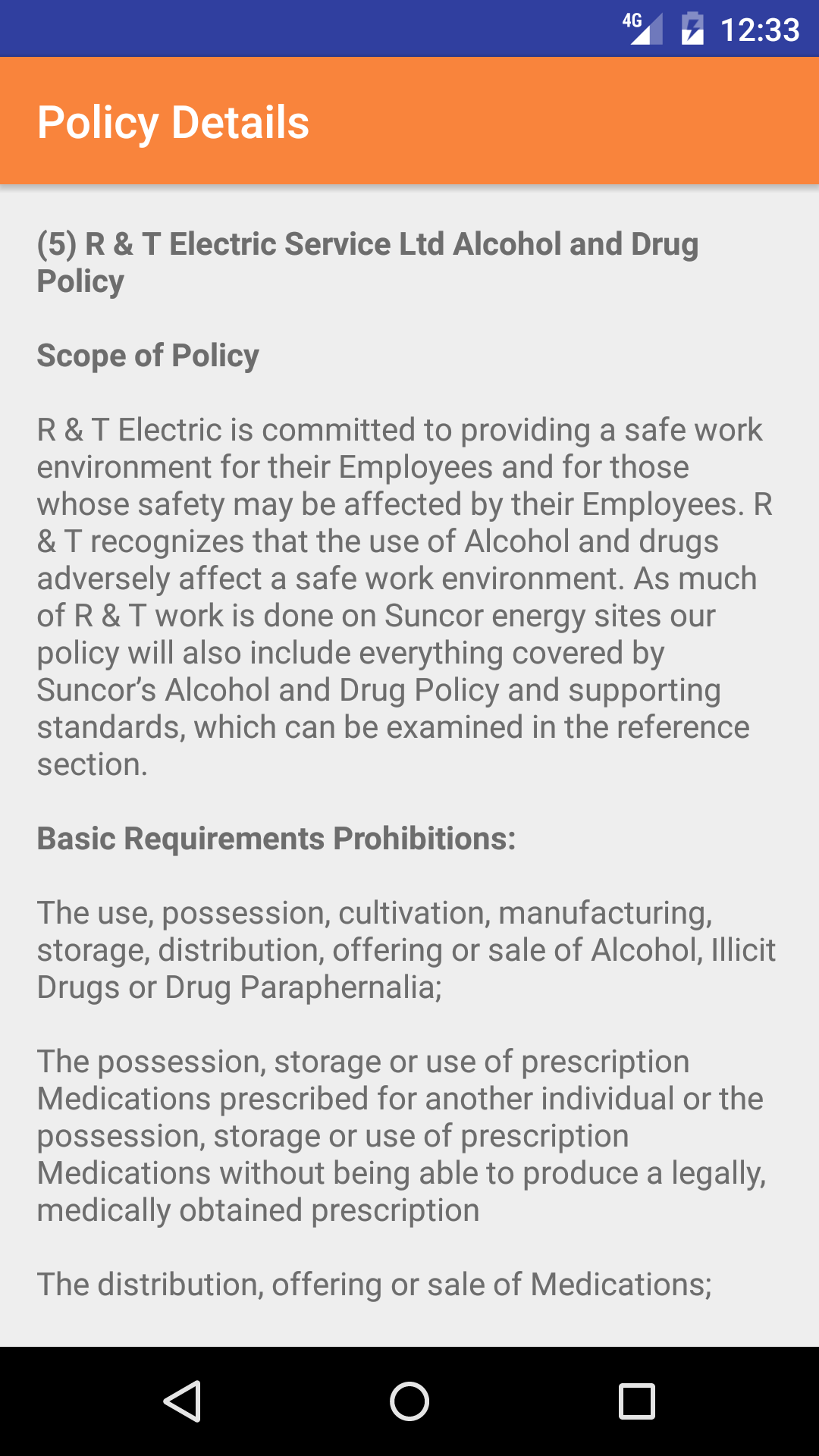 - Tap the + button on the top right hand corner of the screen to open the company policy add screen. Tap the second