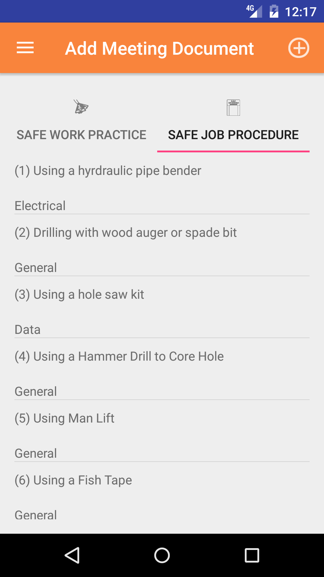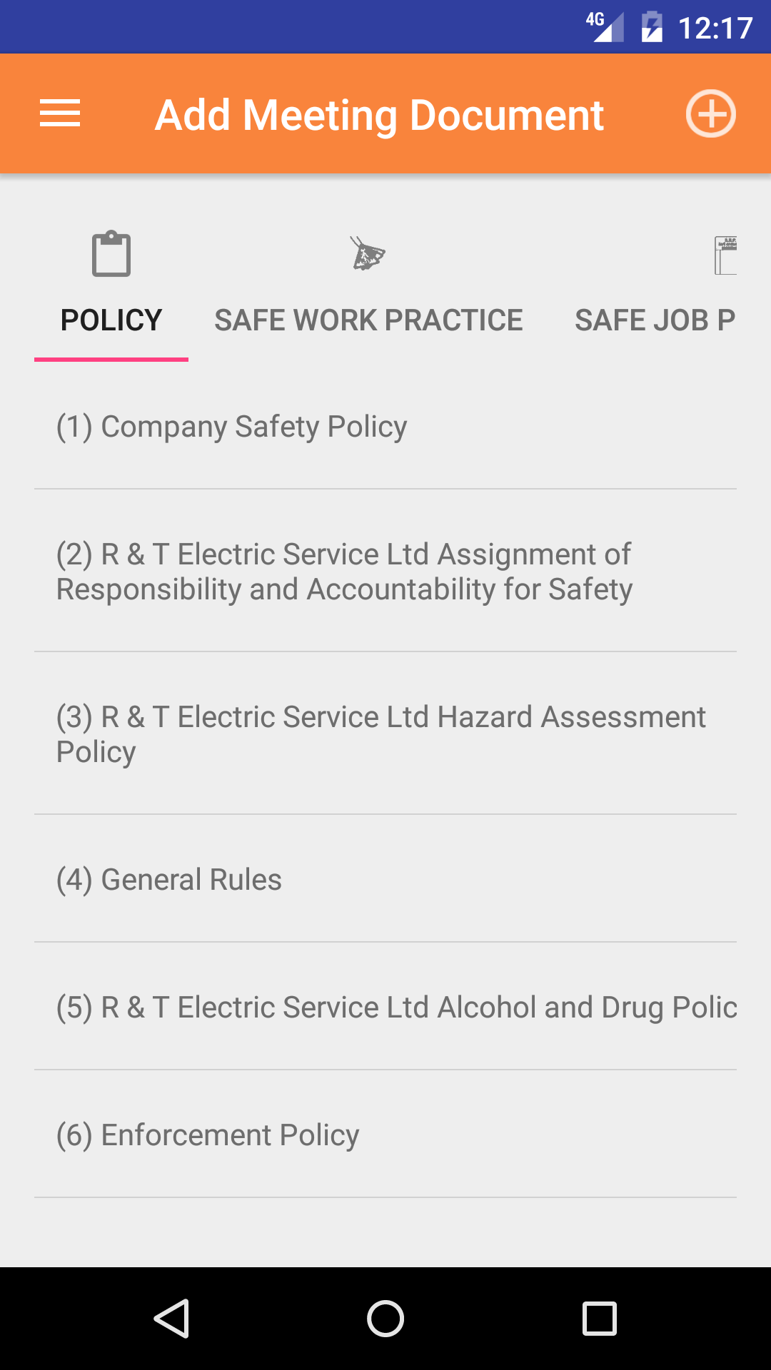 - Tap on the Safe job procedure you would like to to add to the meeting. Procedures can only be added to a meeting once. When added