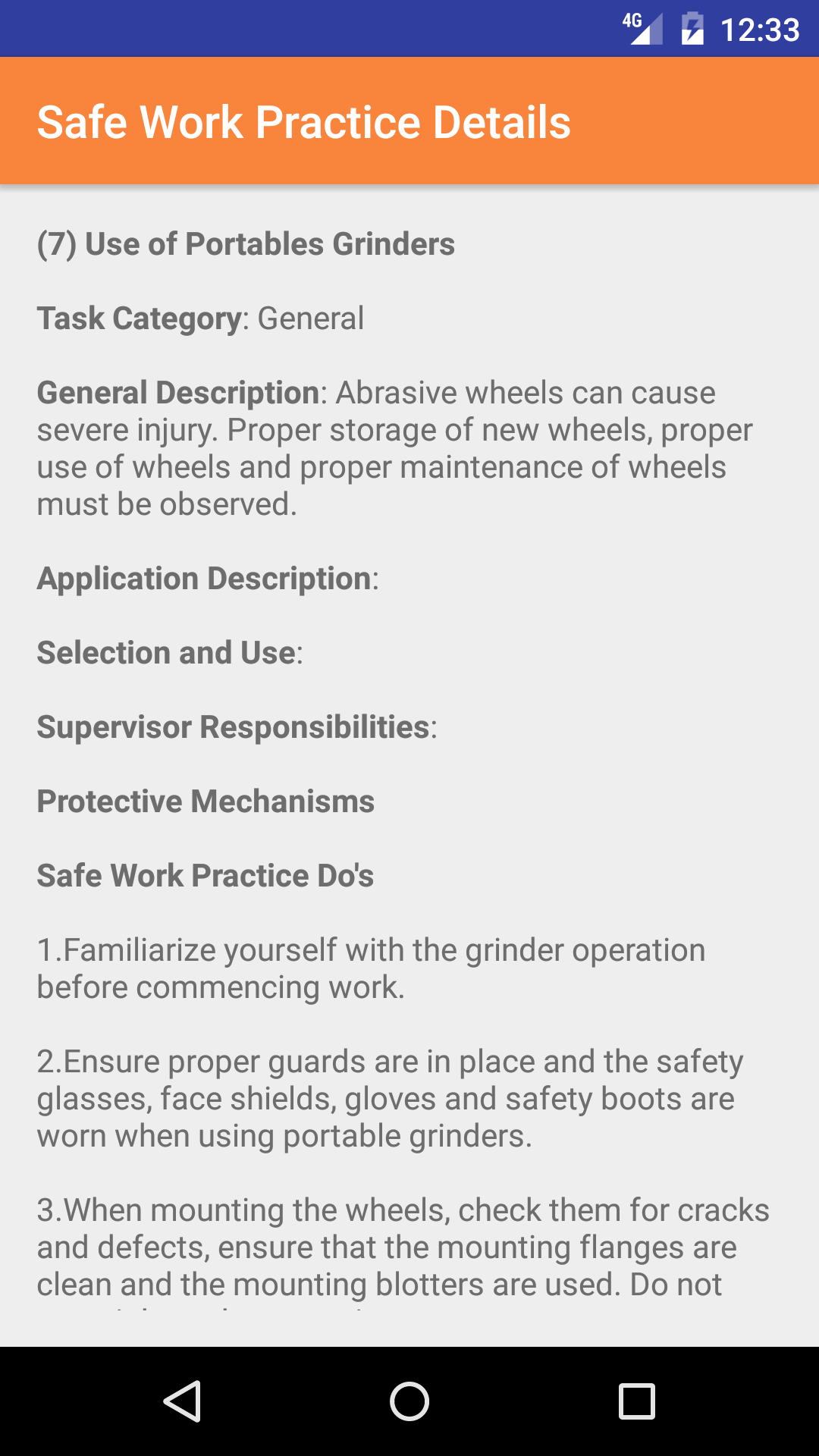 - Scroll the list of safety practice until the desired practice is displayed on the screen.