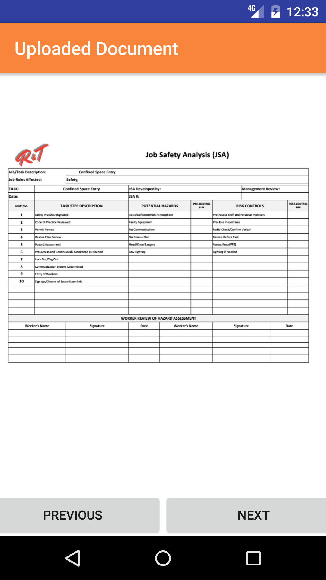 review they must complete the safety meeting and Sign in the Smartphone Application and the meeting must be closed