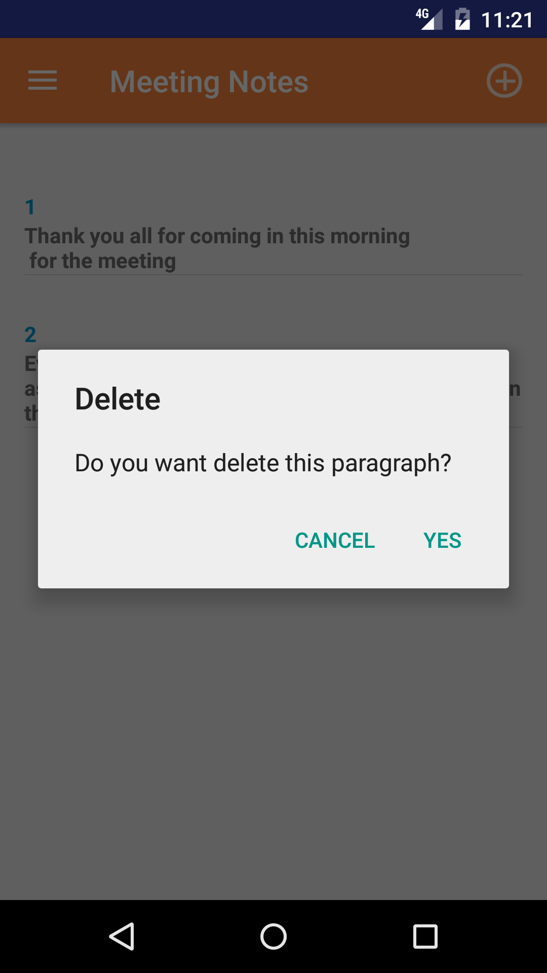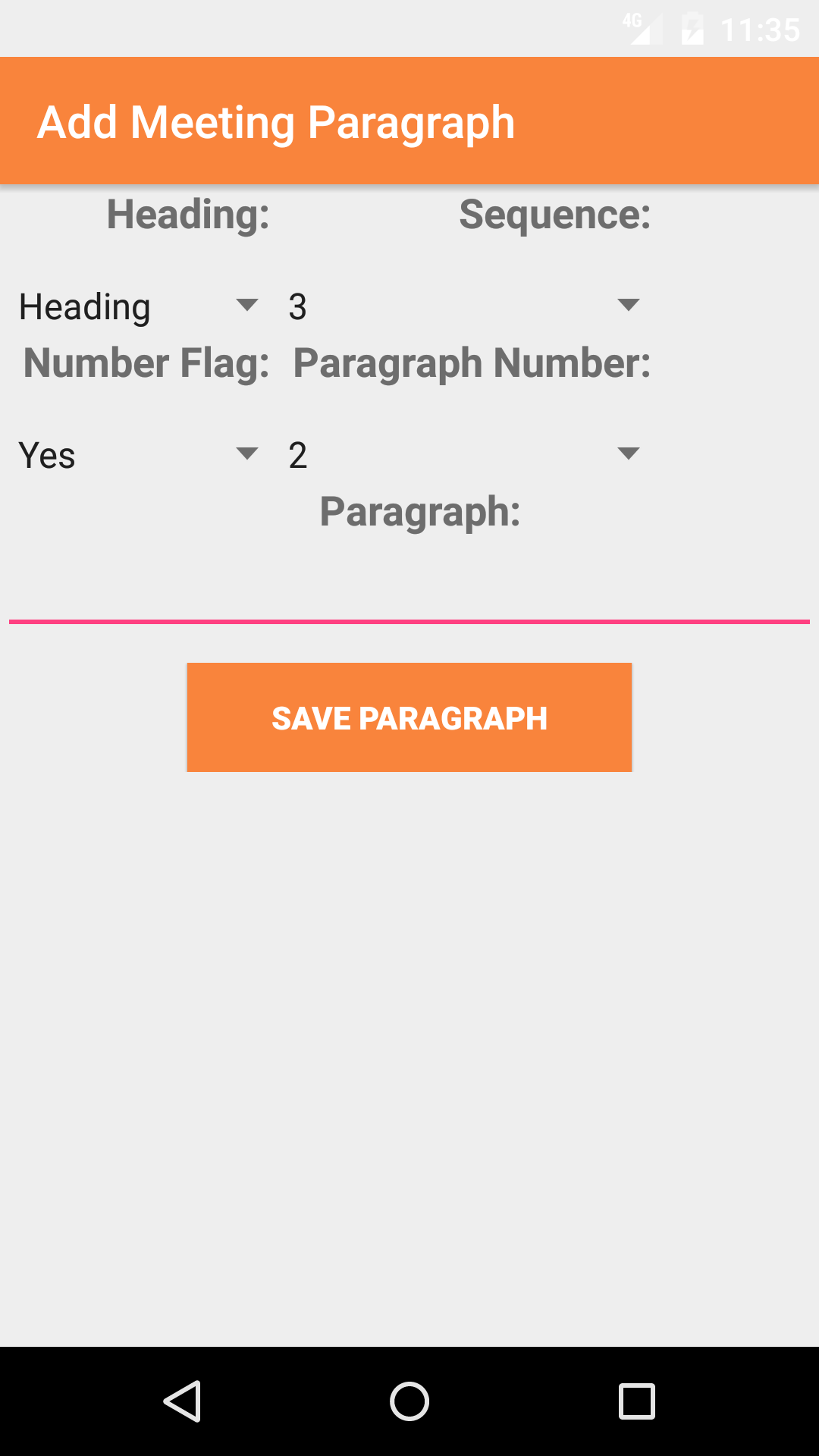 - Tap the + icon in the top right corner to open the Add Paragraph screen.