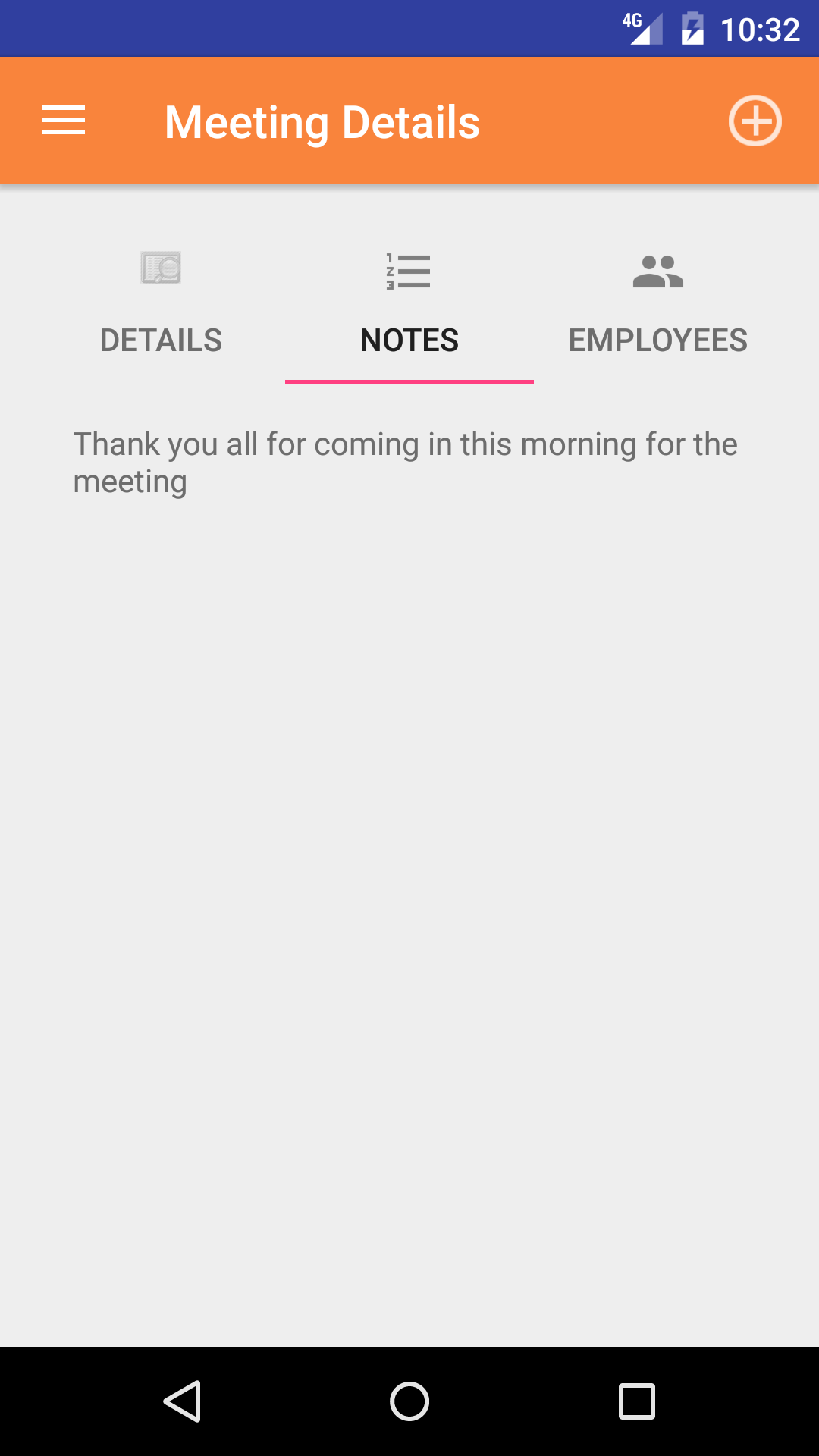 - Tap the + icon in the top right corner to add the Meeting.