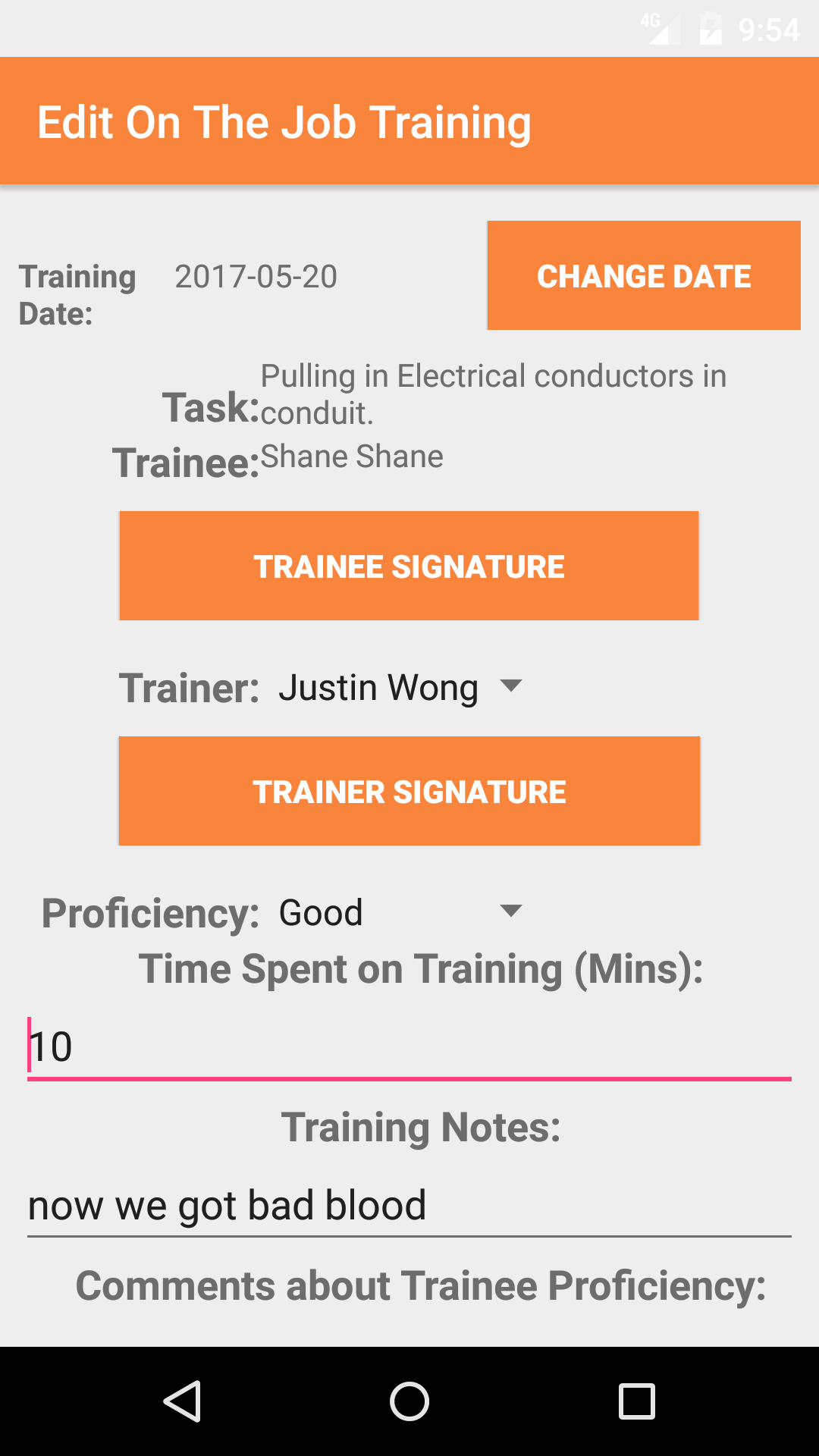 - Tap on the On The Job Training Detail you would like to view. This loads the on the job training detail edit screen.