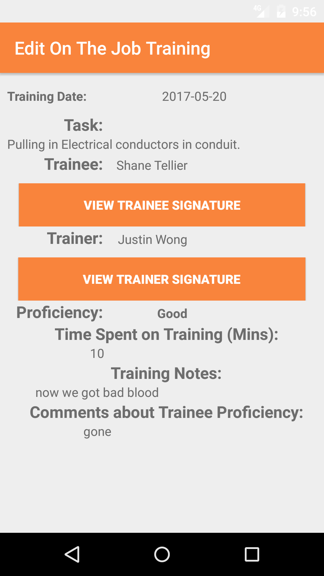 After On The Job Training details have been closed out, they will be available to look at through the History view on the iPhone Application.
