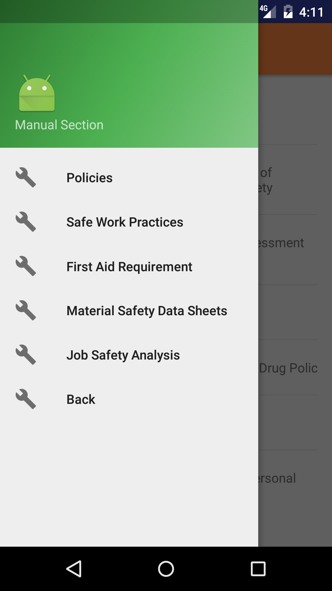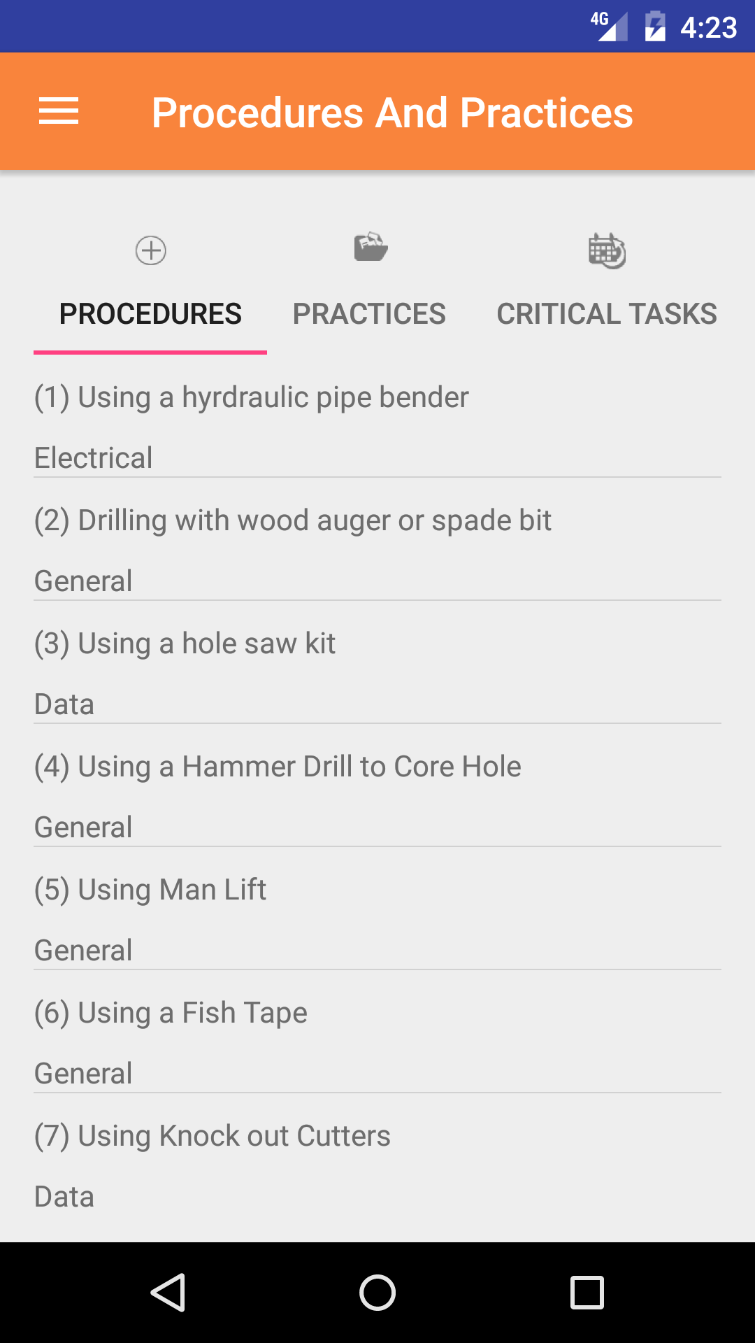 The safe job procedure section in the Android application allows companies to give field staff access to the safe job procedures of their safety program.
