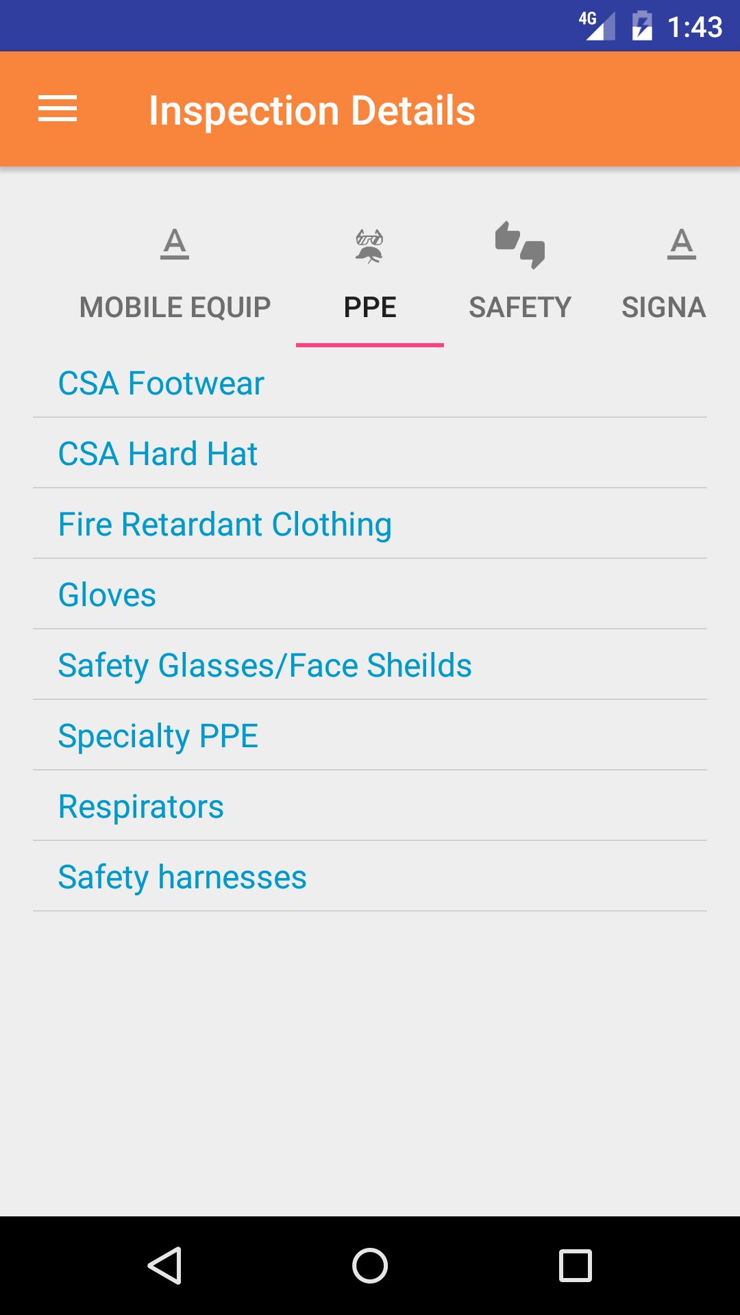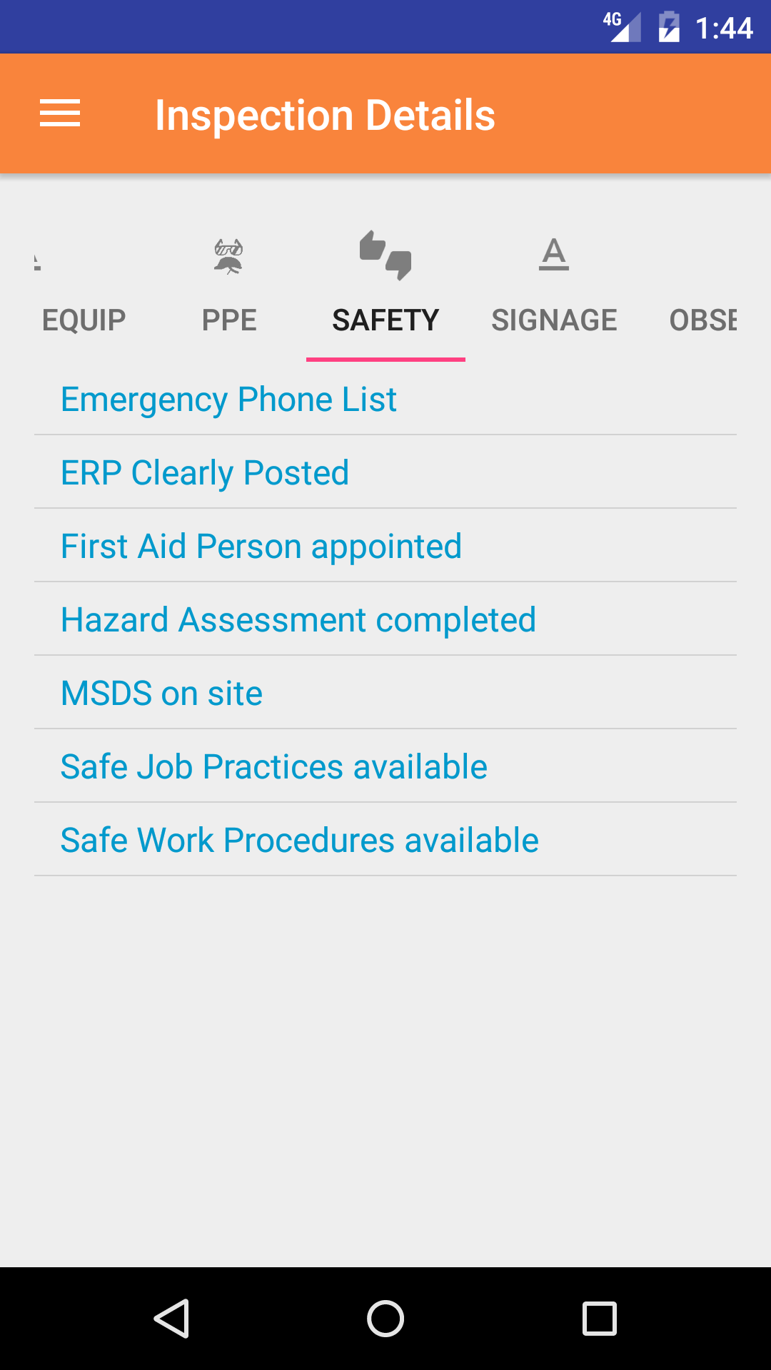 - Tap the Safety button which loads with the safety inspection tasks listed with Task Name