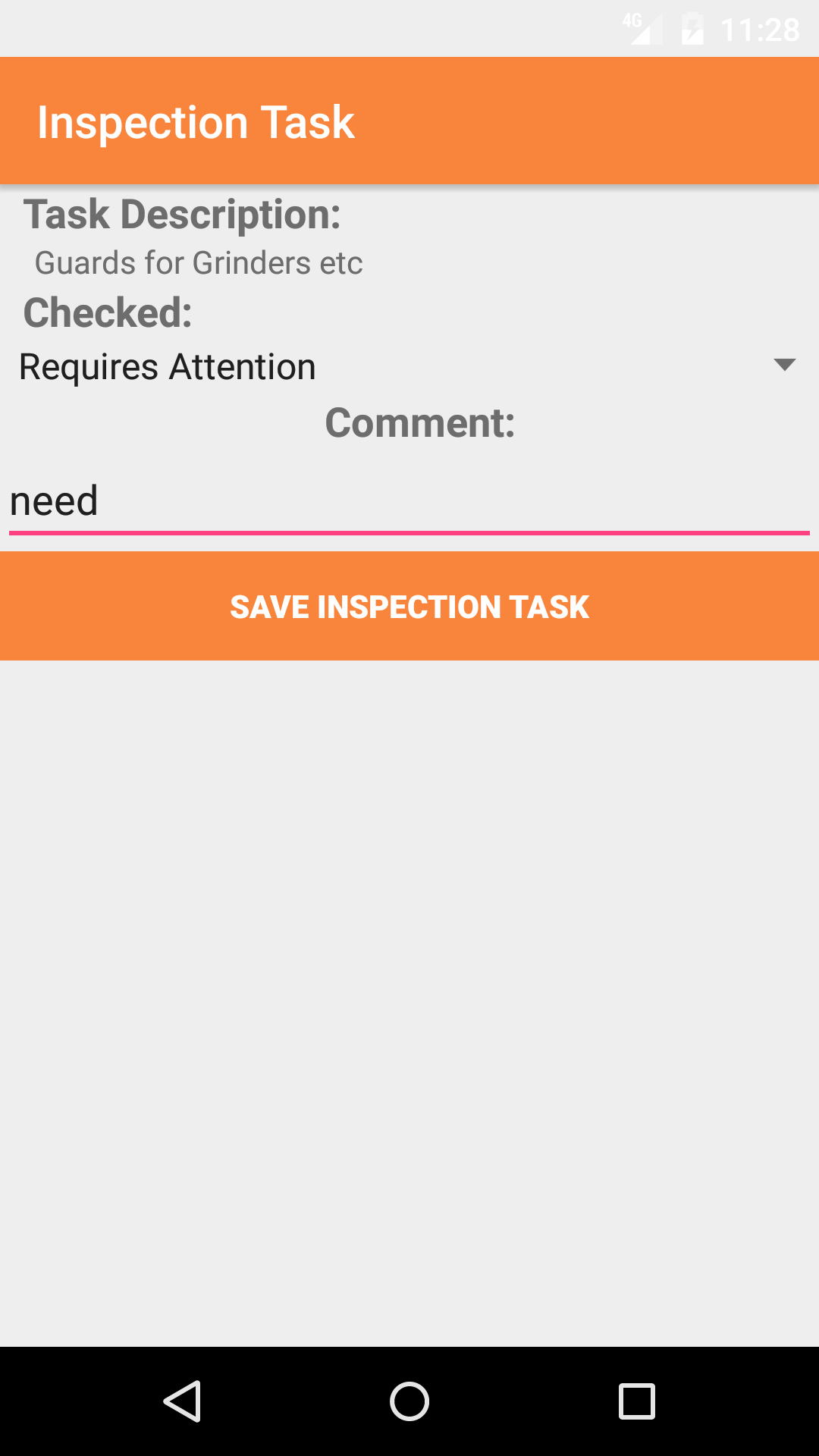 - Requires Attention: means inspection tasks has been found to be requires attention. Any task marked as Req. requires a description