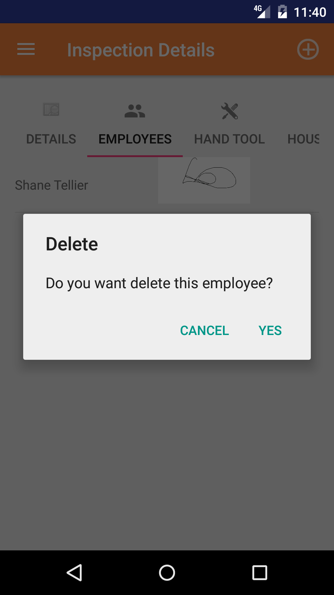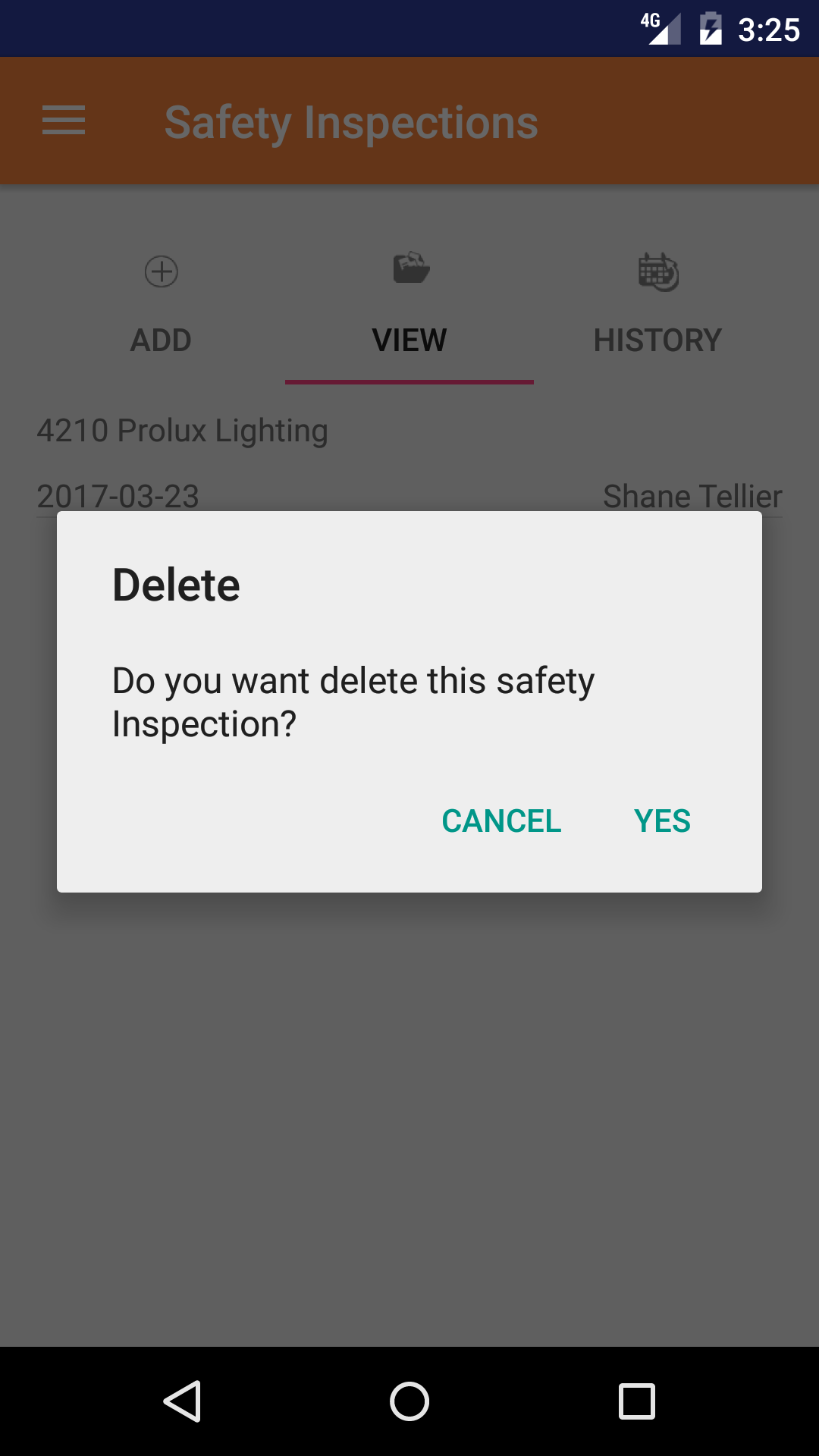 - Long Tap the safety inspection to bring up the delete screen for the safety inspection.
