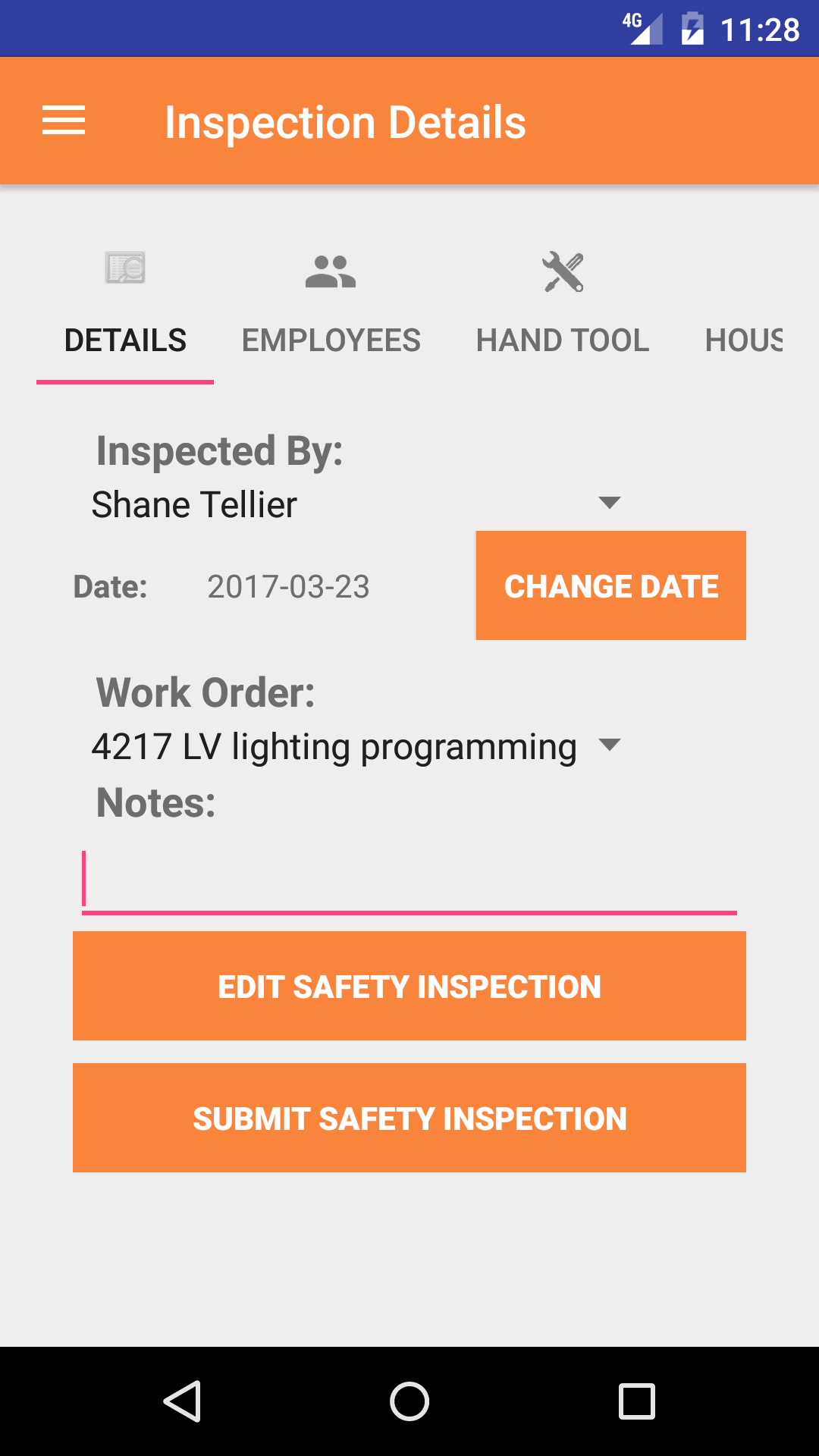 The first step in completing a Safety Inspection is completing the details of the inspection; including date, setting the employee whom inspected the job site,