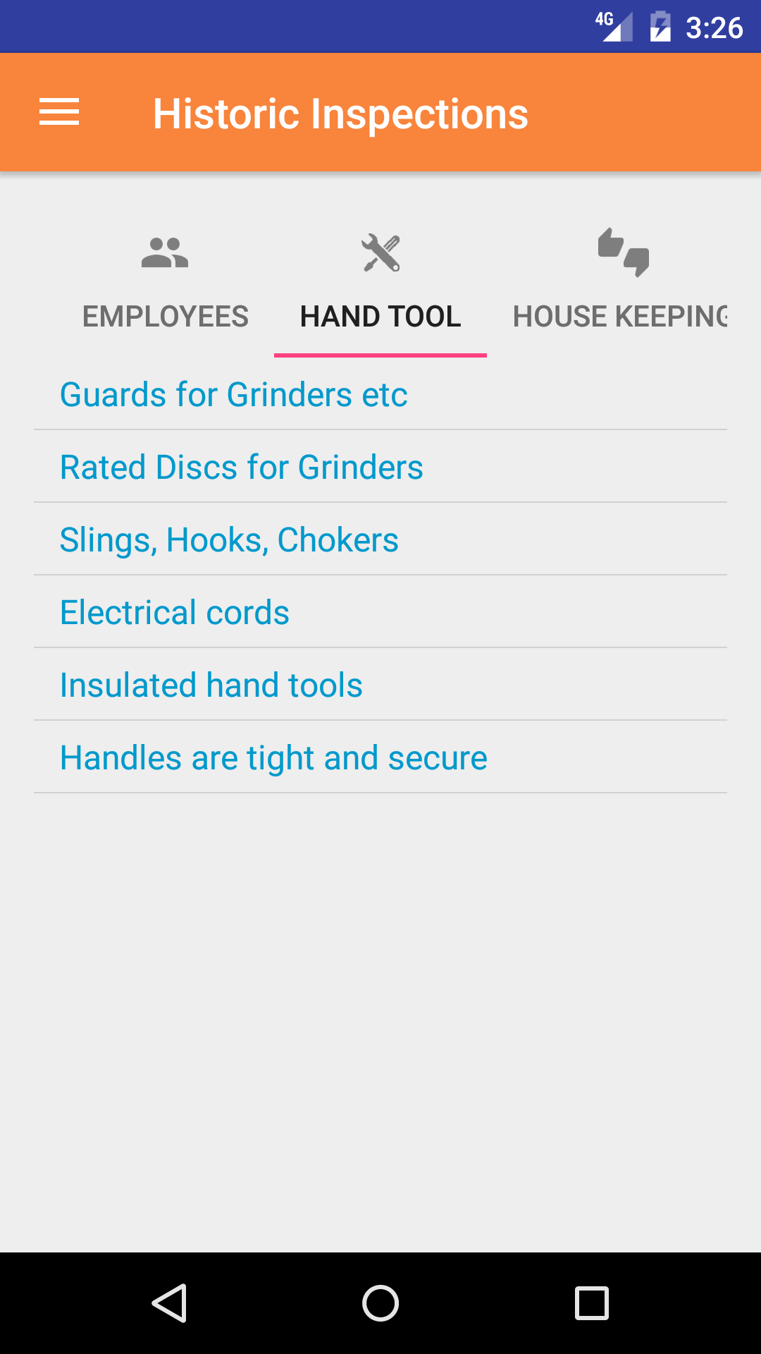 - Tap the Condition of Hand Tools button which loads with the condition of hand tools inspection tasks listed with Task Name