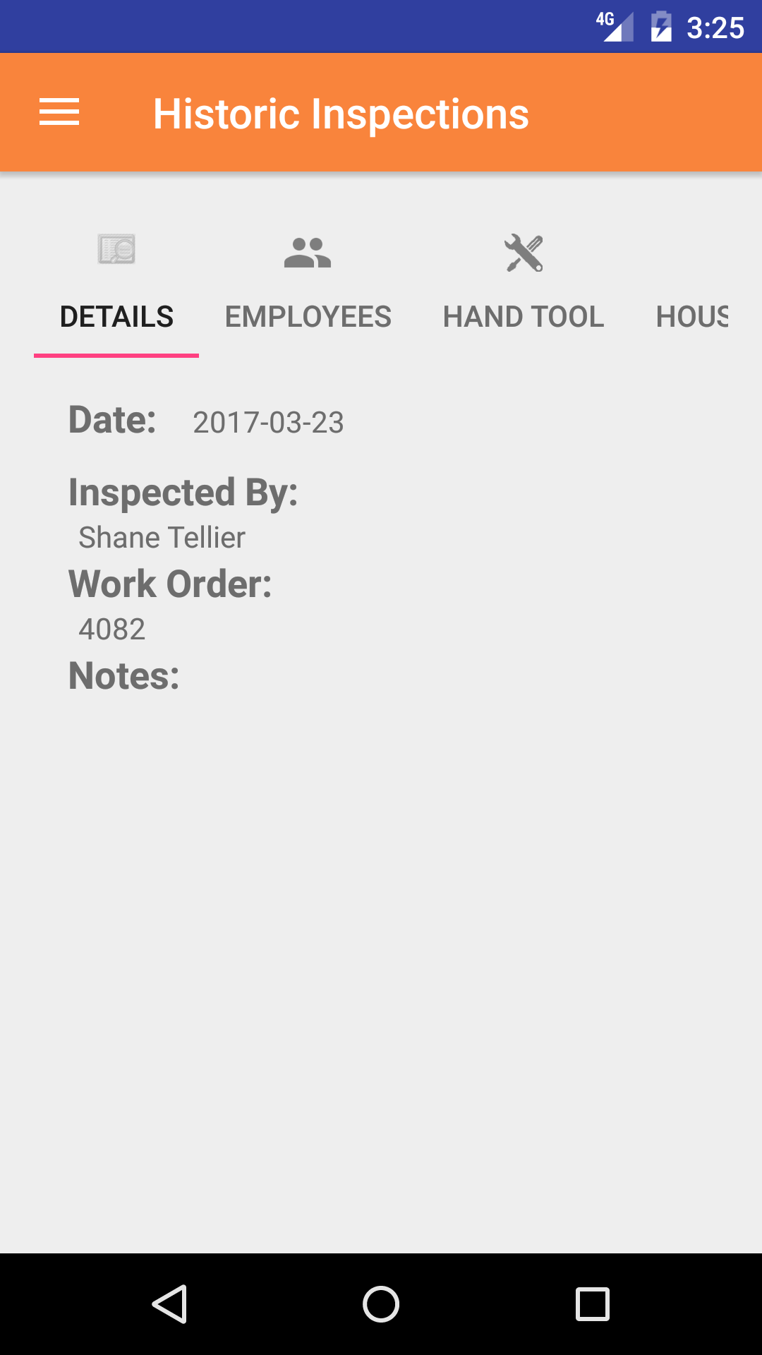 - Tap on the Safety Inspection you would like to view. This loads the first tab, the Safety Inspection details tab of the History view.