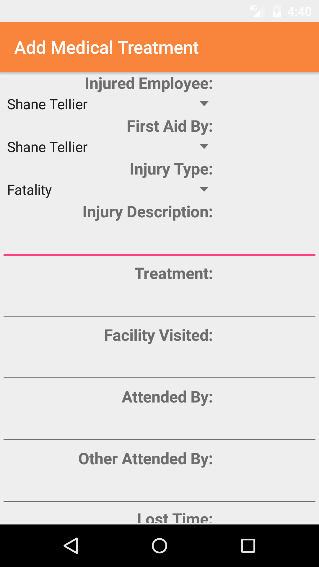 The first aid by employee field initialy displays the name of the person who added the Safety Investigation and should be updated to indicate the employee who performed the needed first aid.
