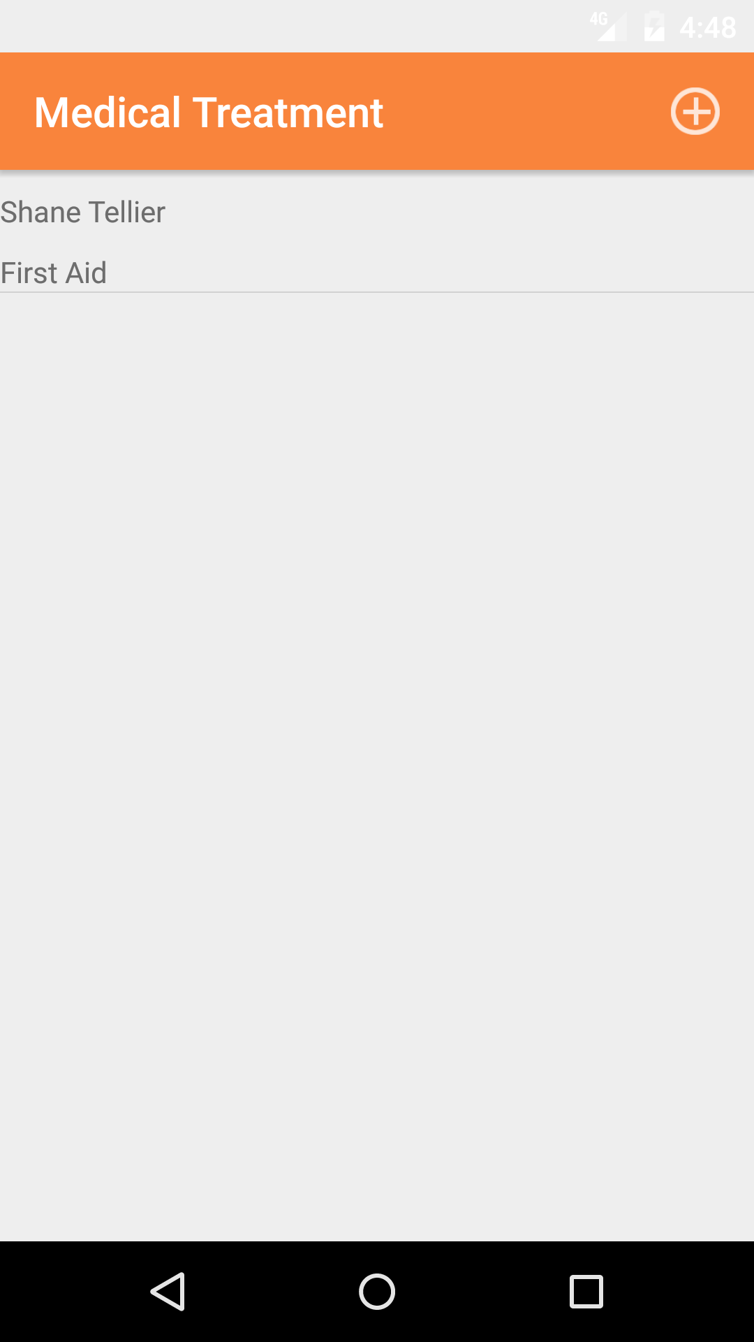 - Tap the + icon in the top right corner to load the add medical treatment screen