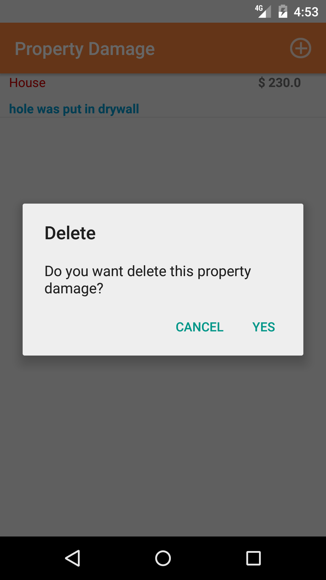 - Swipe from the right edge to the left to bring up the delete button for the property damage.
