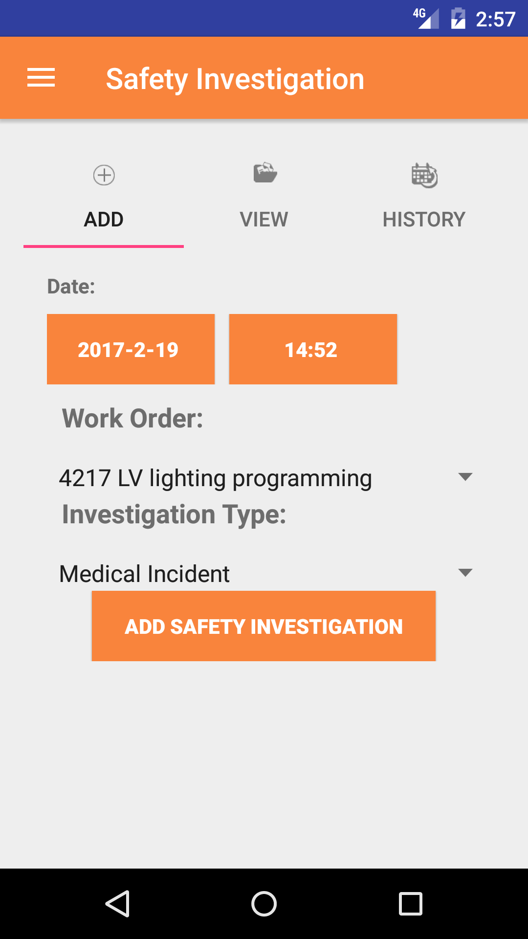 - Tap the Add Safety Investigation button to add the Safety Investigation.