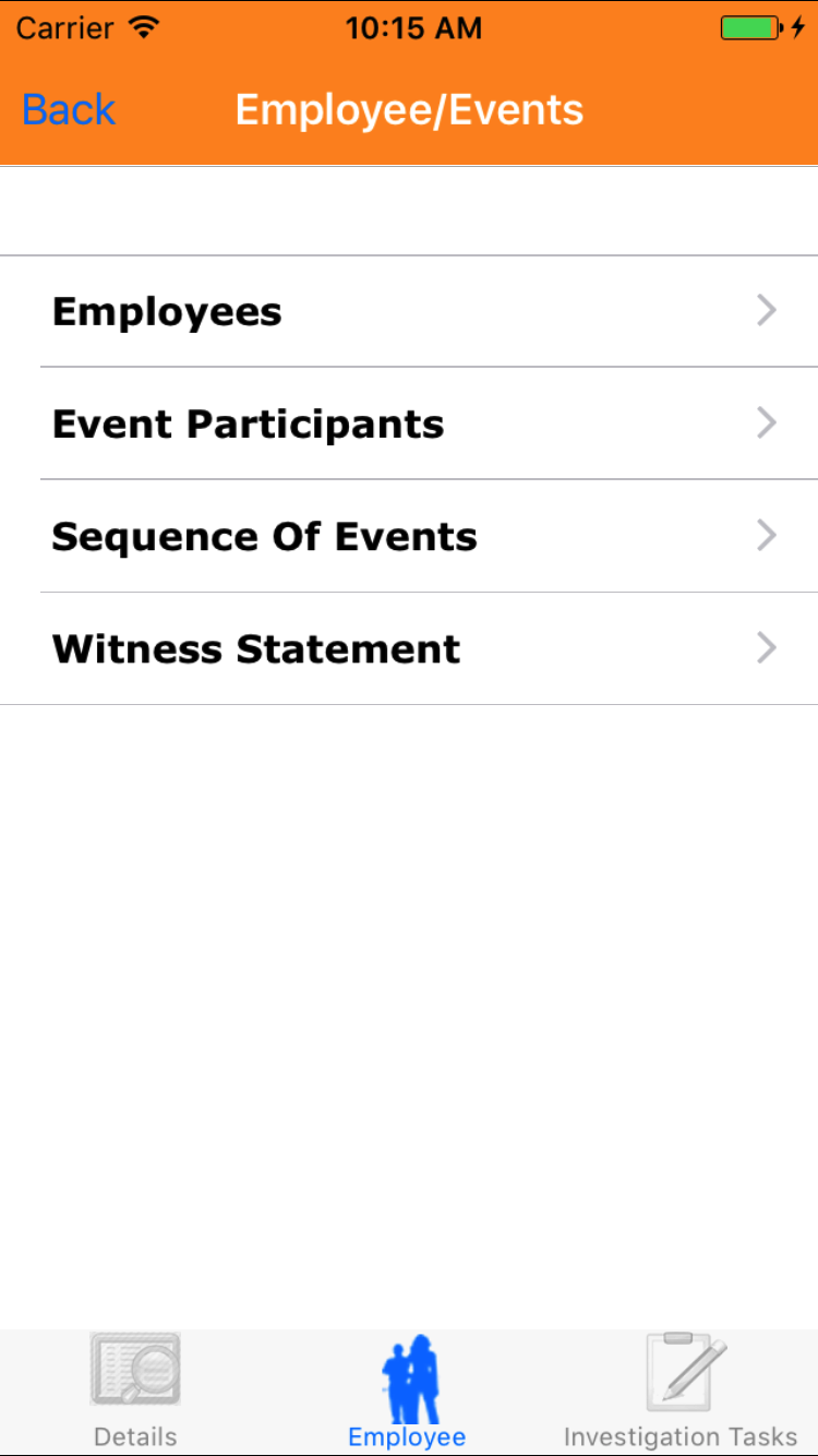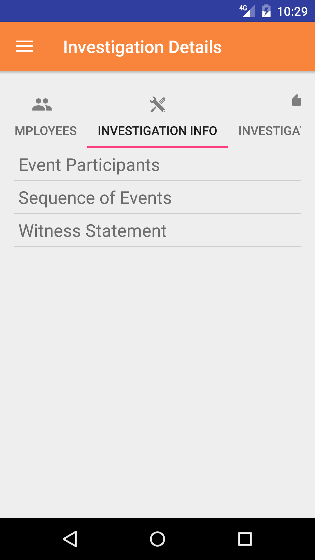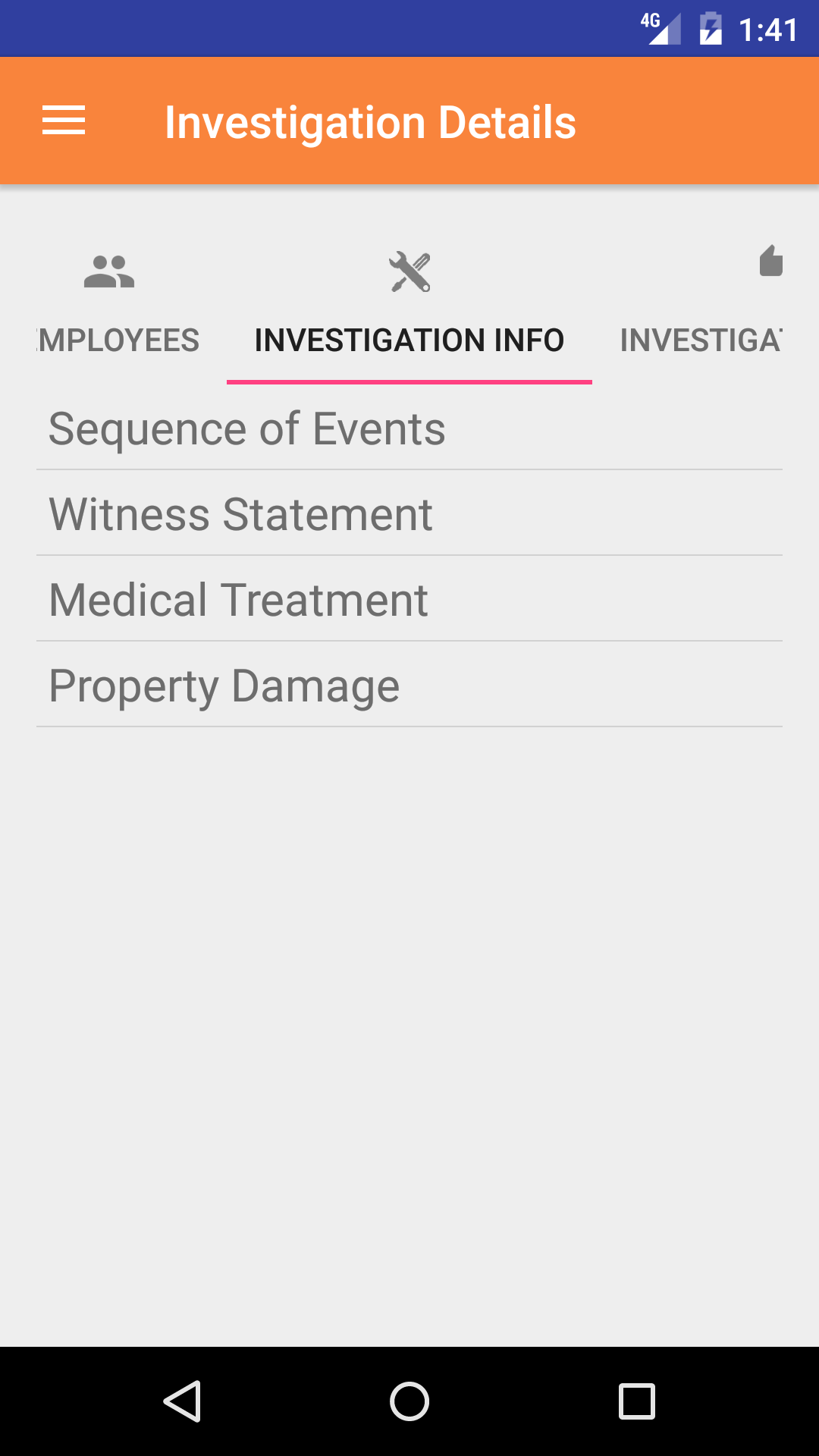 - Tap the third tab, the Investigation Details tab of the History view. This loads with the medical treatment and property damage, tapping