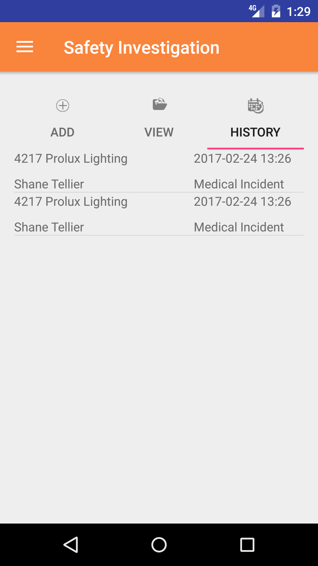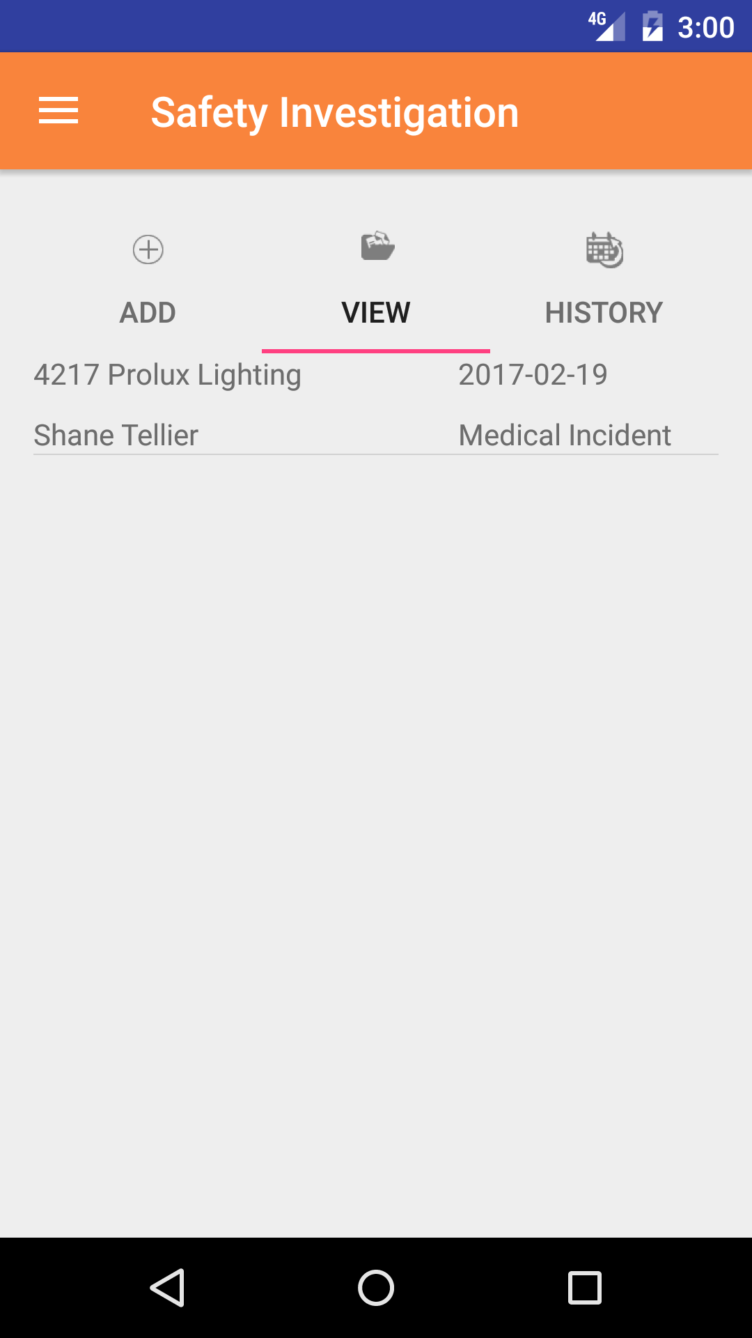 - Tap on the Safety Investigation you would like to view. This loads the first tab, the Safety Investigation details tab of the History view.