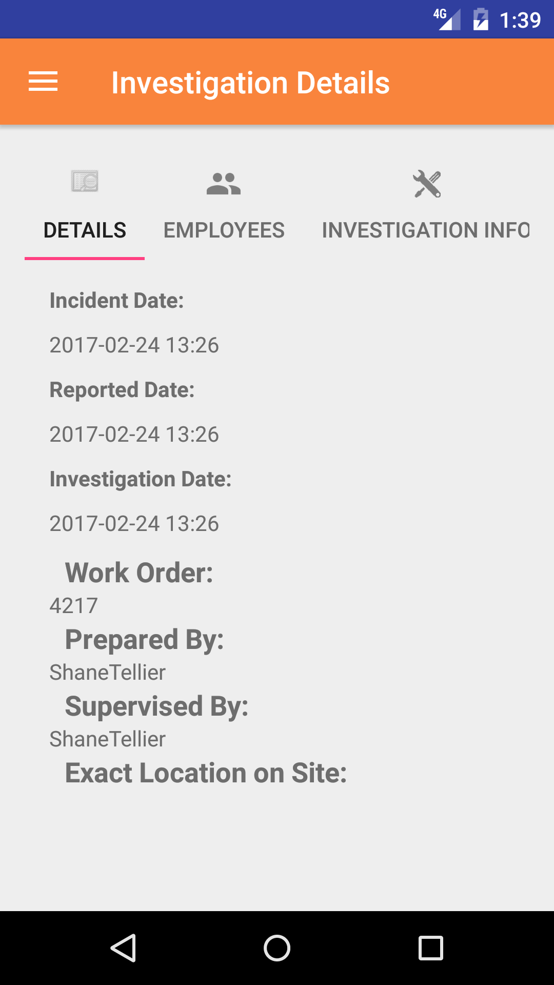 workers to share and complete a safety investigation as a group. Once a safety investigation is submitted all employee's added to the safety investigation will have access to the safety investigation.