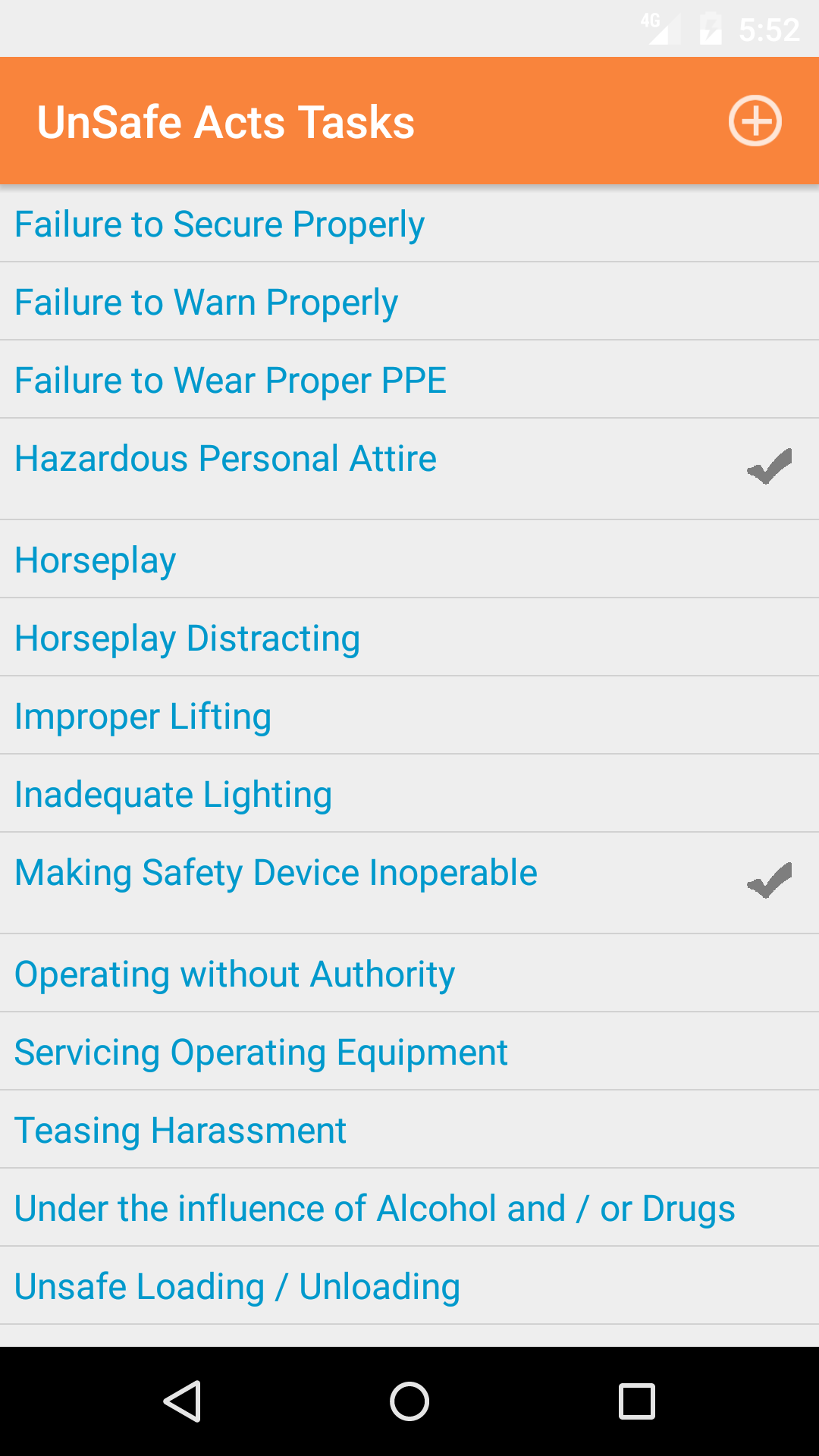 These safety investigation tasks is set up in eight sections; Incident Types check list, Contact With check list, Unsafe Acts check list, Unsafe Conditions check list,