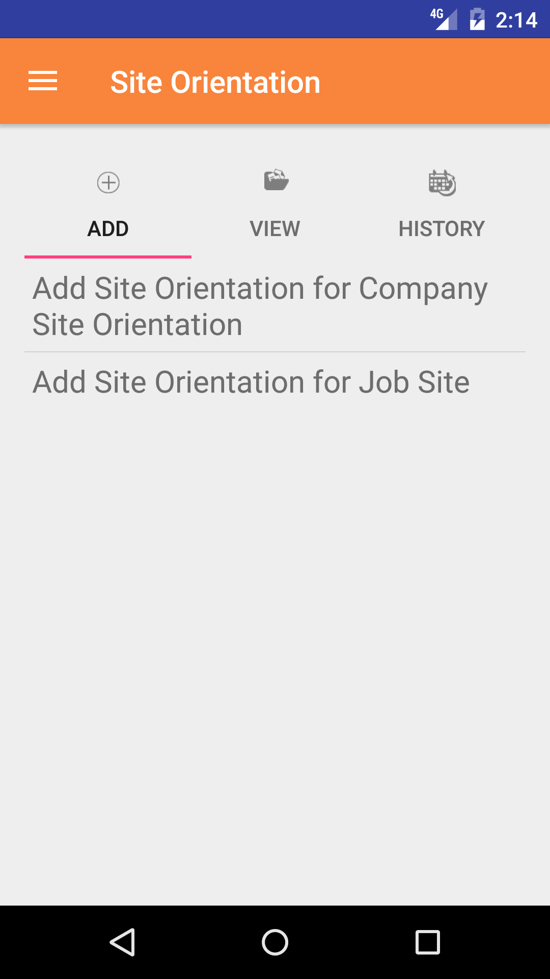 - Tap the Add Site Orientation for Job Site button.