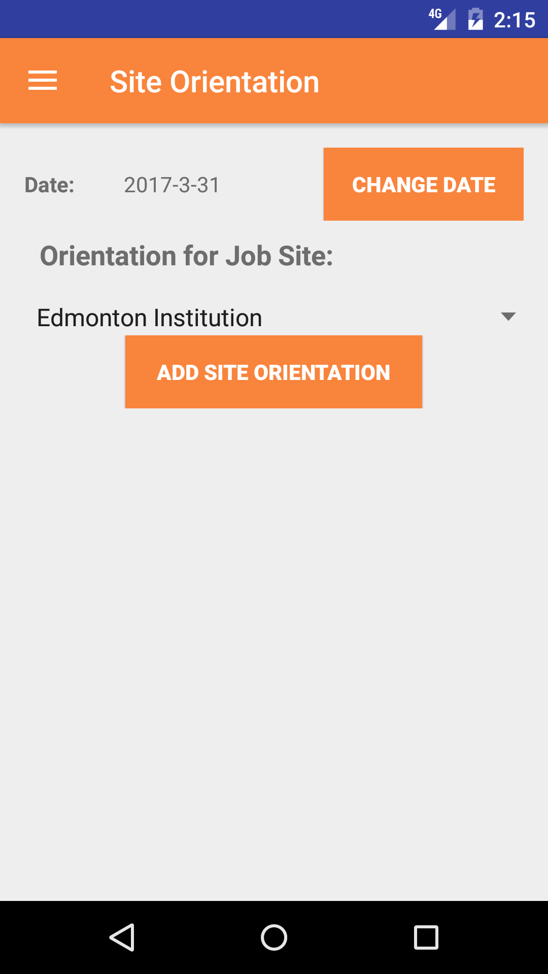 - This opens the Add Site Orientation for Job Site entry screen.