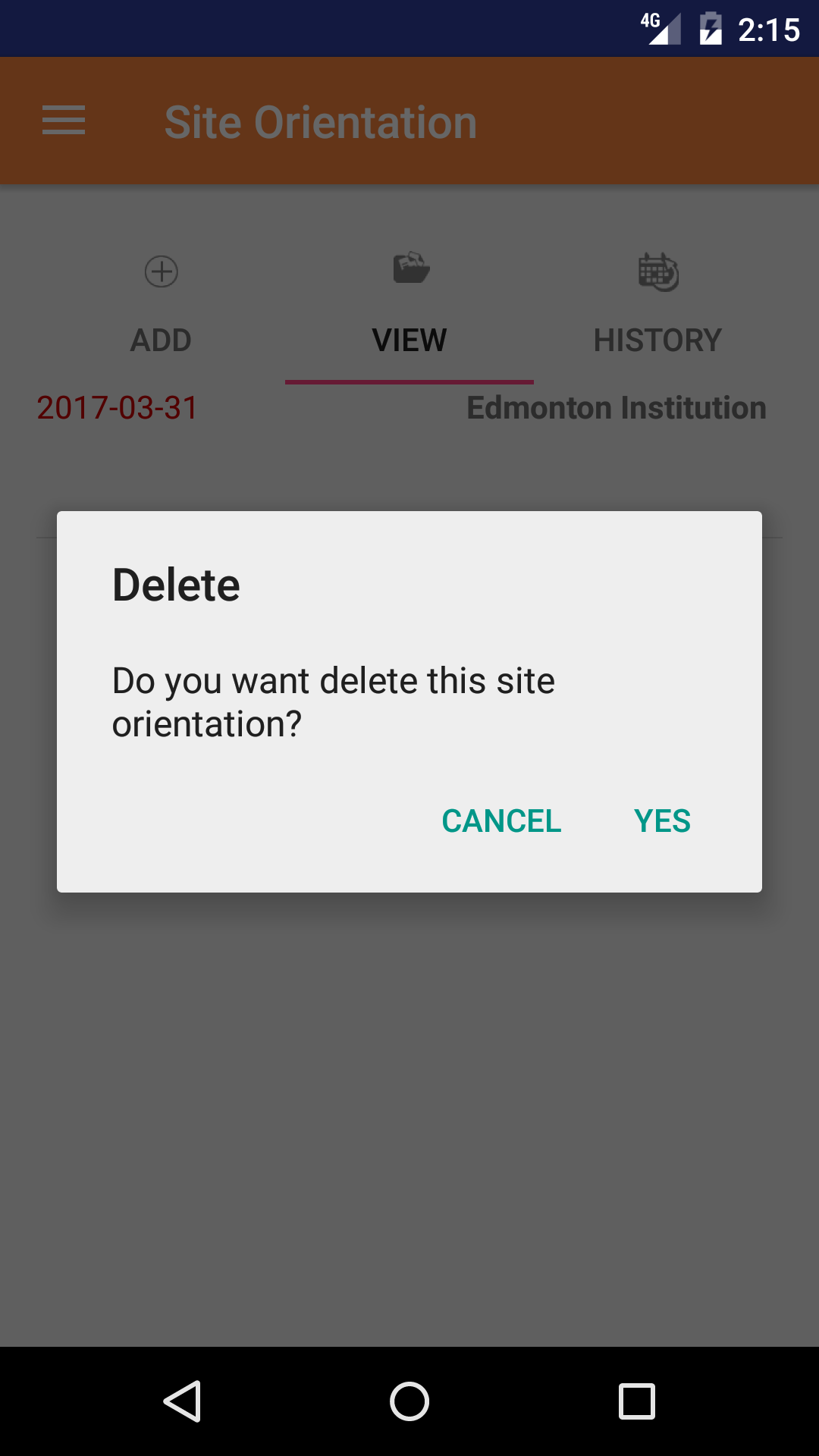 - Tap the Delete button. The site orientation will be deleted.