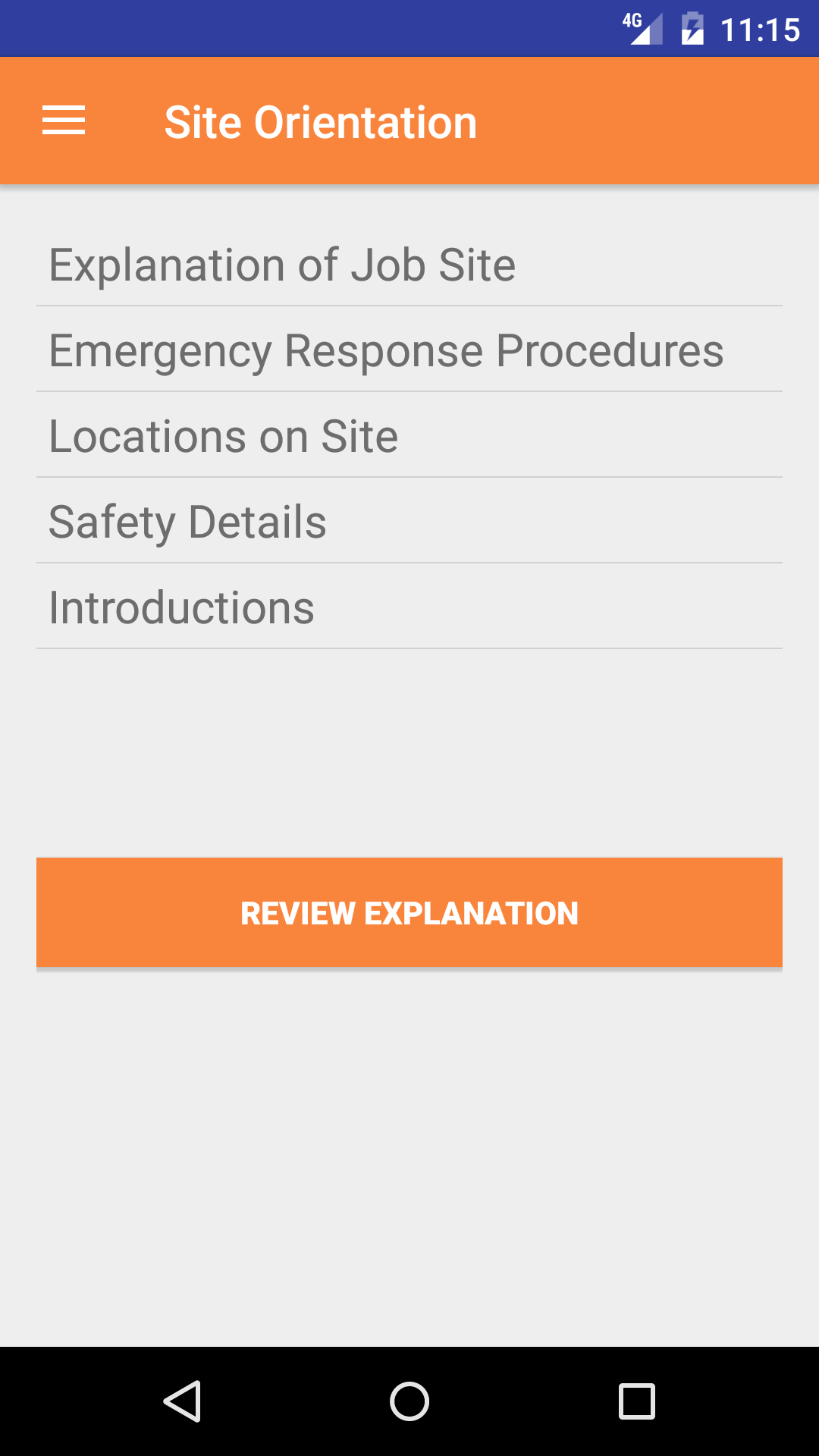 The site orientation section allows field staff to conduct and record a site orientation. Site Orientations can be created from scratch for any job site or based