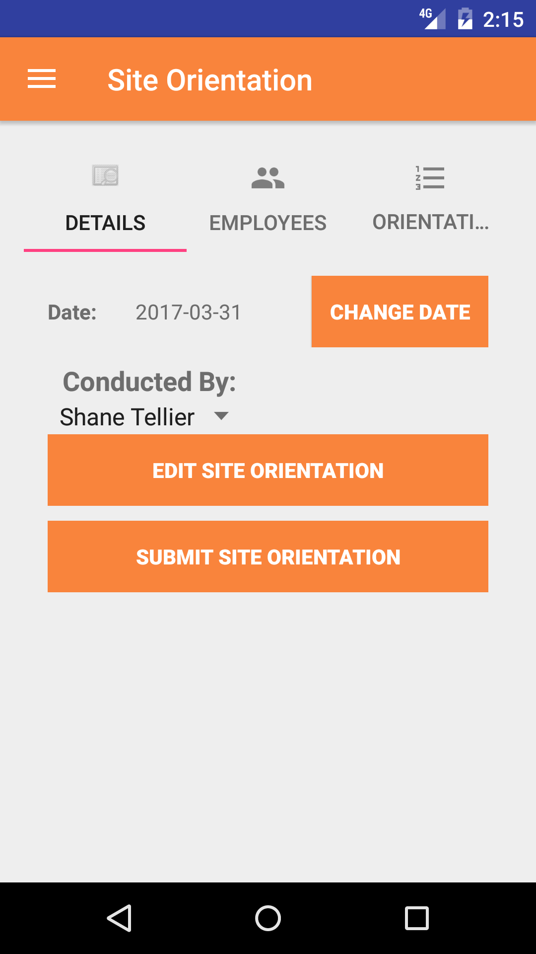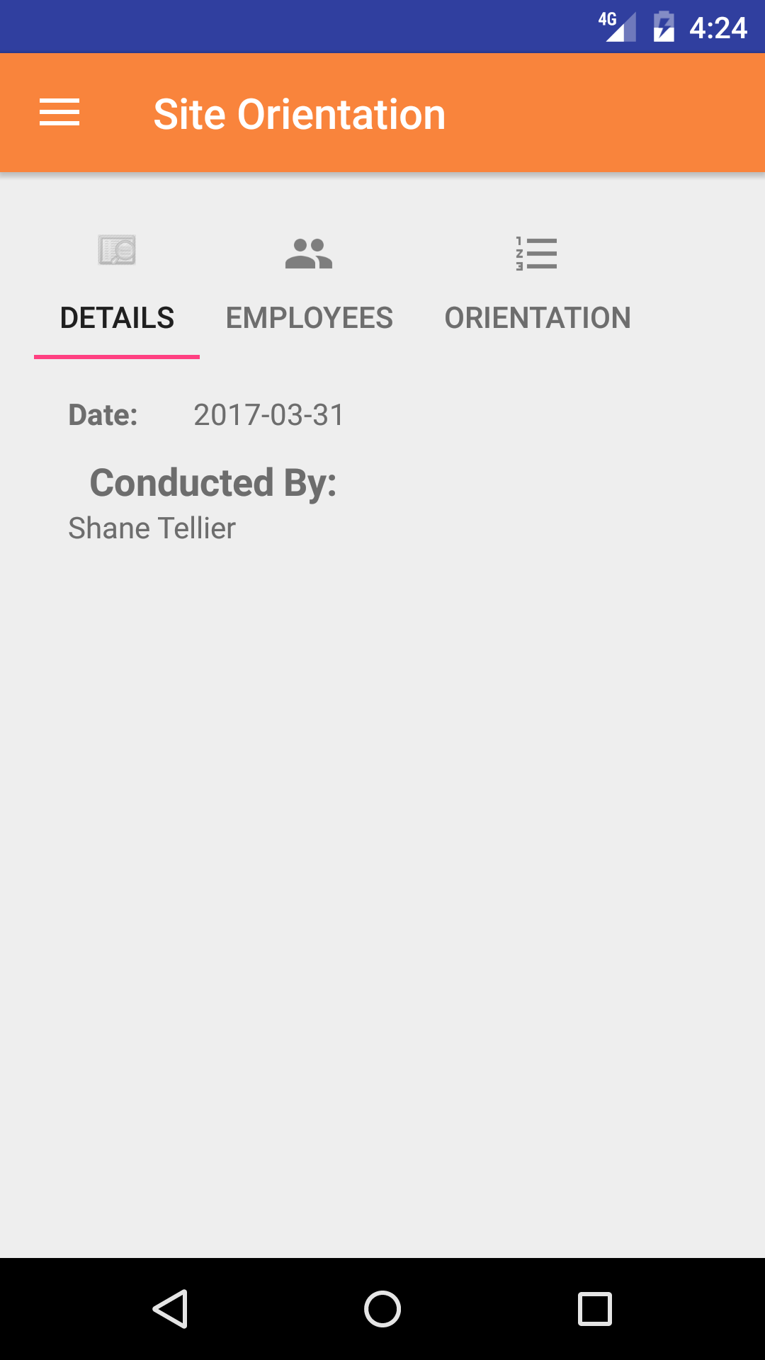 - Tap the second tab, the Site Orientation Participants lists the field staff names with their signature whom participated in the site orientation.