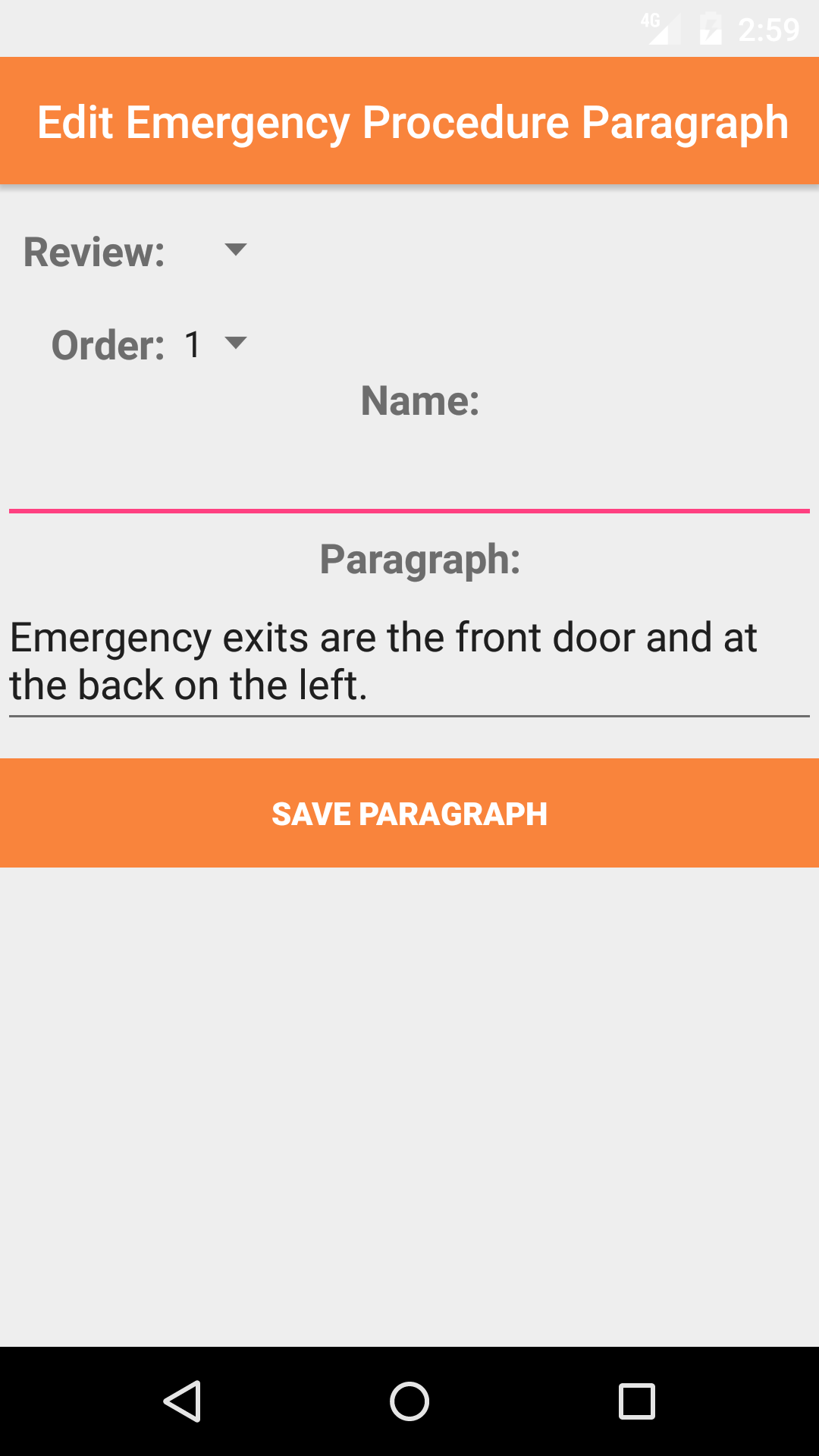 - Tap the Save Paragraph button, to edit the a emergency response procedure paragraph.