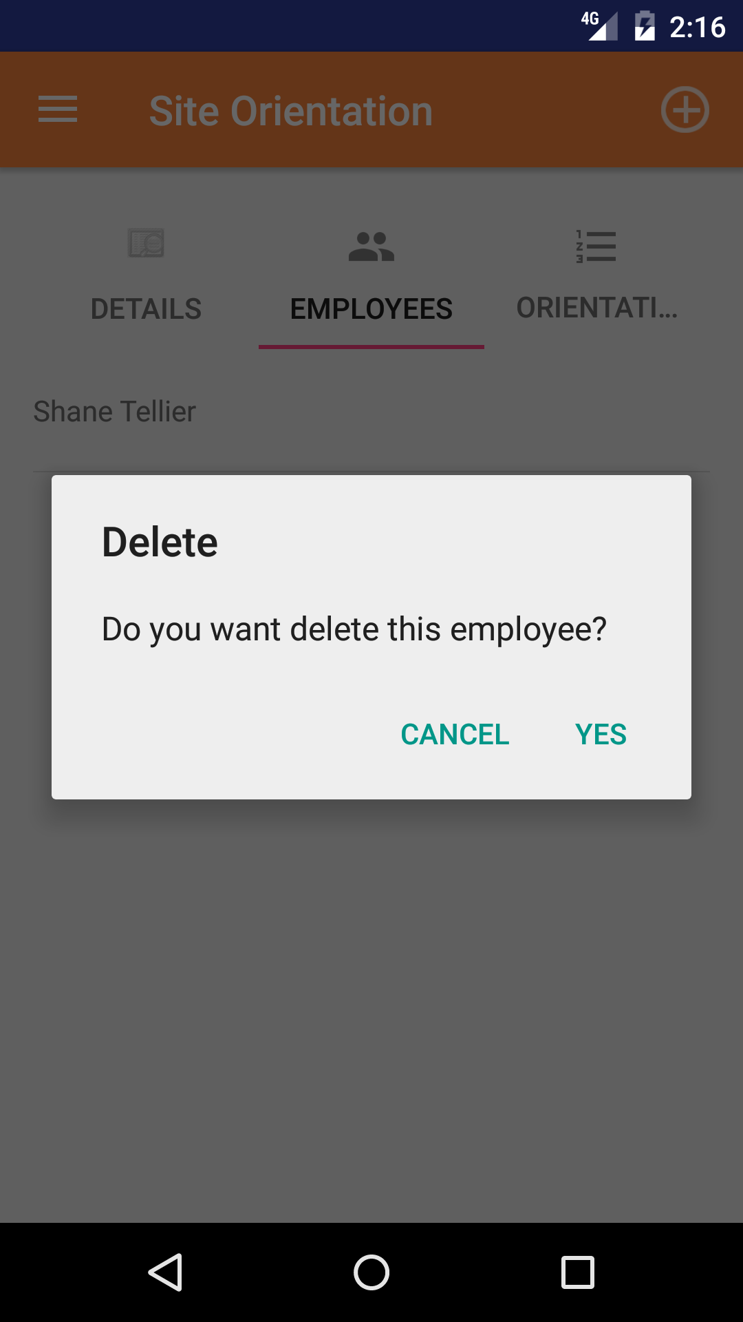 - Long Tap the employee to bring up the delete screen for the employee.