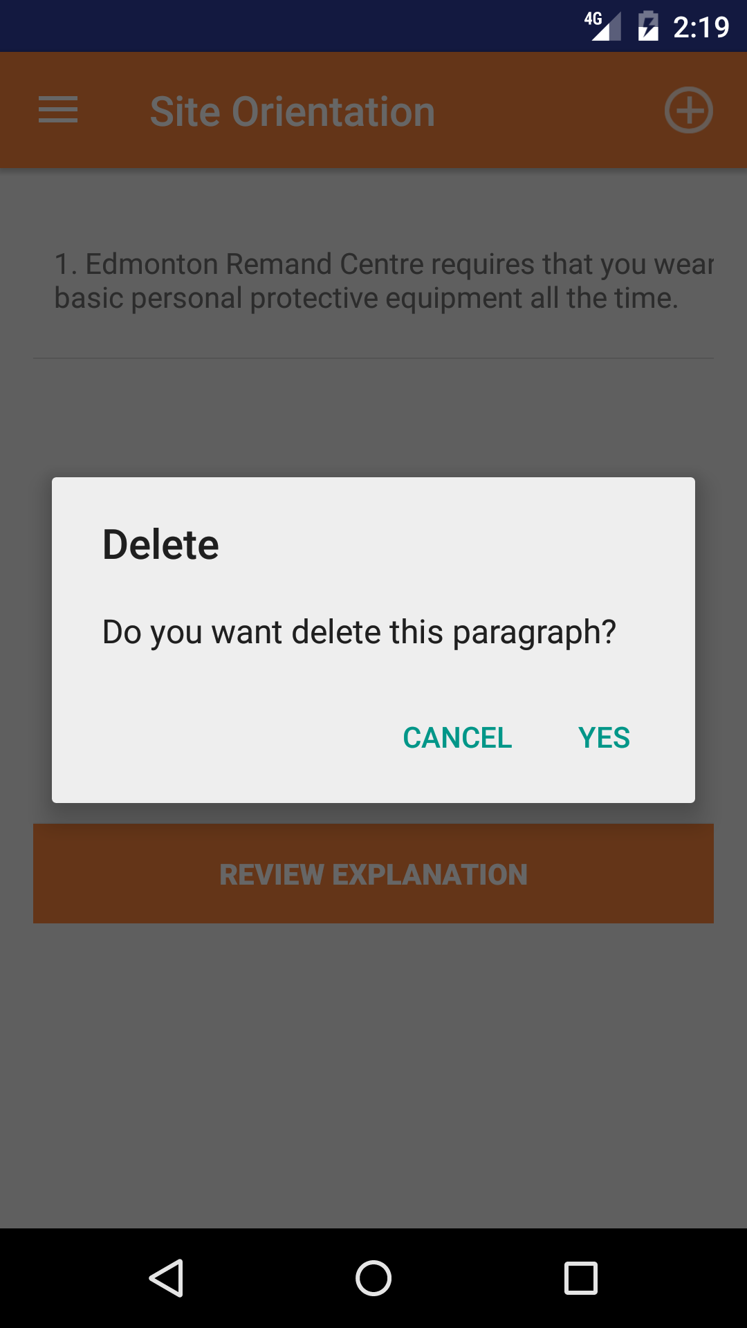 - Tap the Delete button. The emergency response procedure paragraph will be deleted.