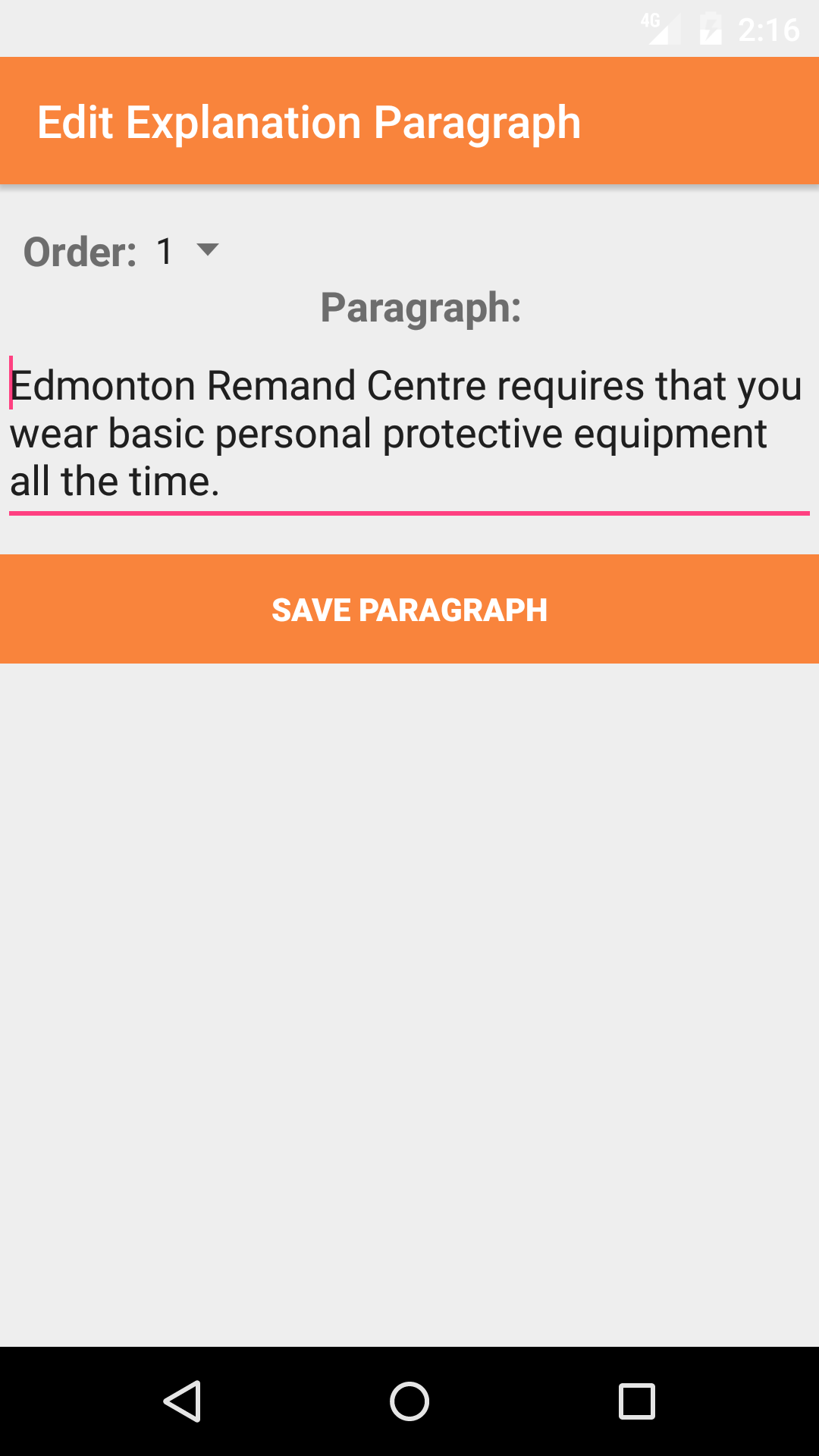 - Tap the Save Paragraph button, to edit the a introduction paragraph.