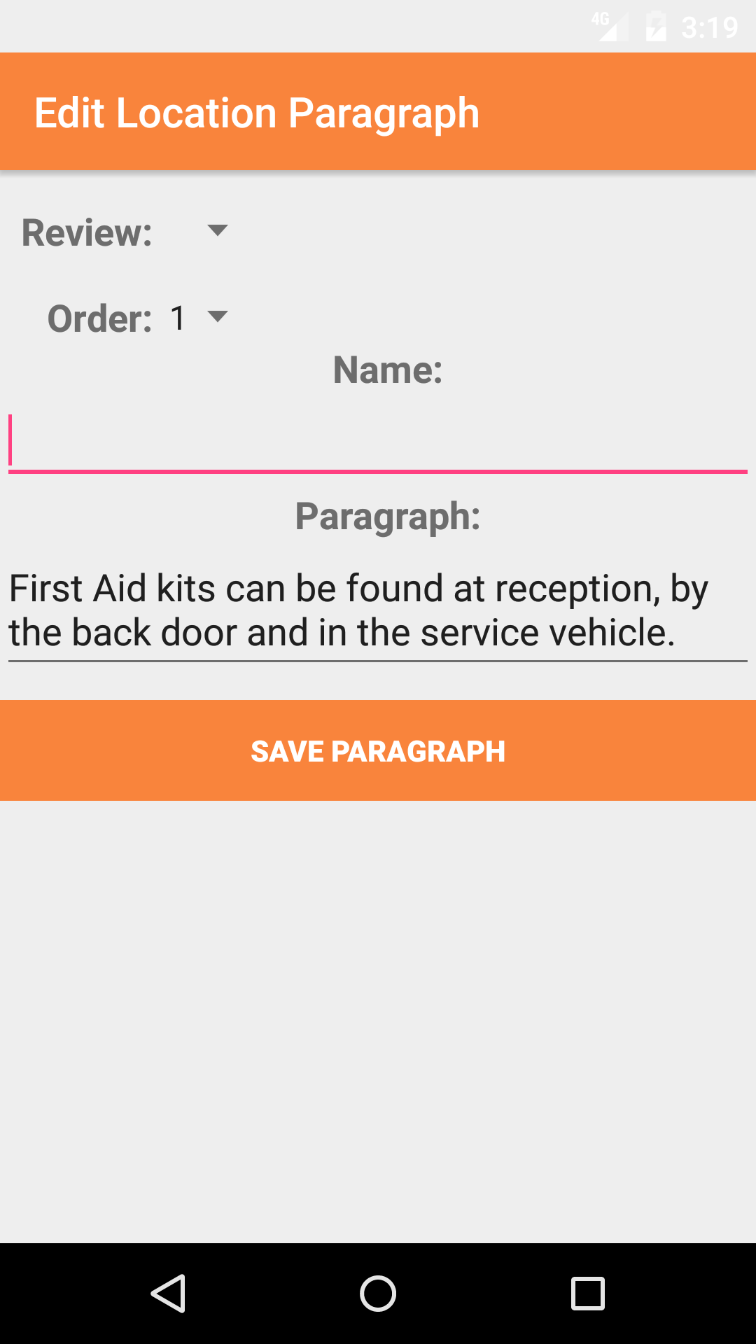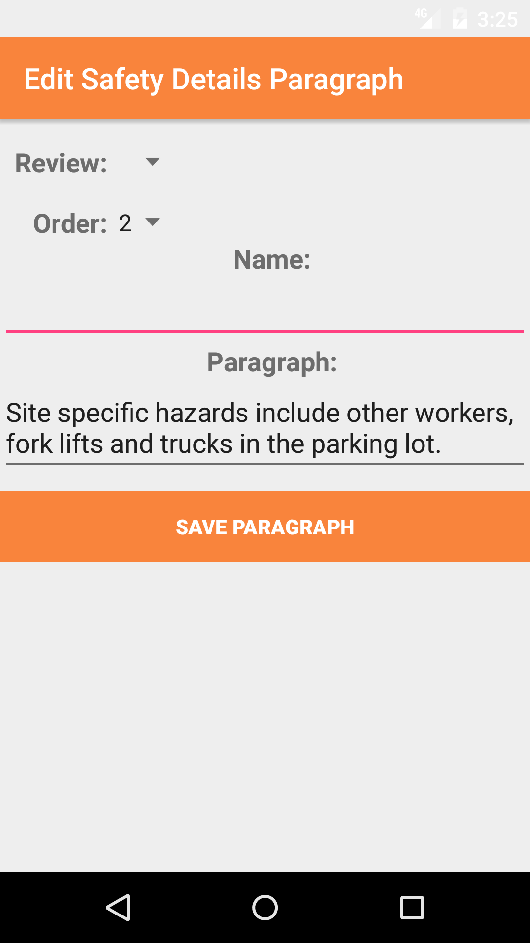 - Tap the Save Paragraph button, to edit the a safety details paragraph.