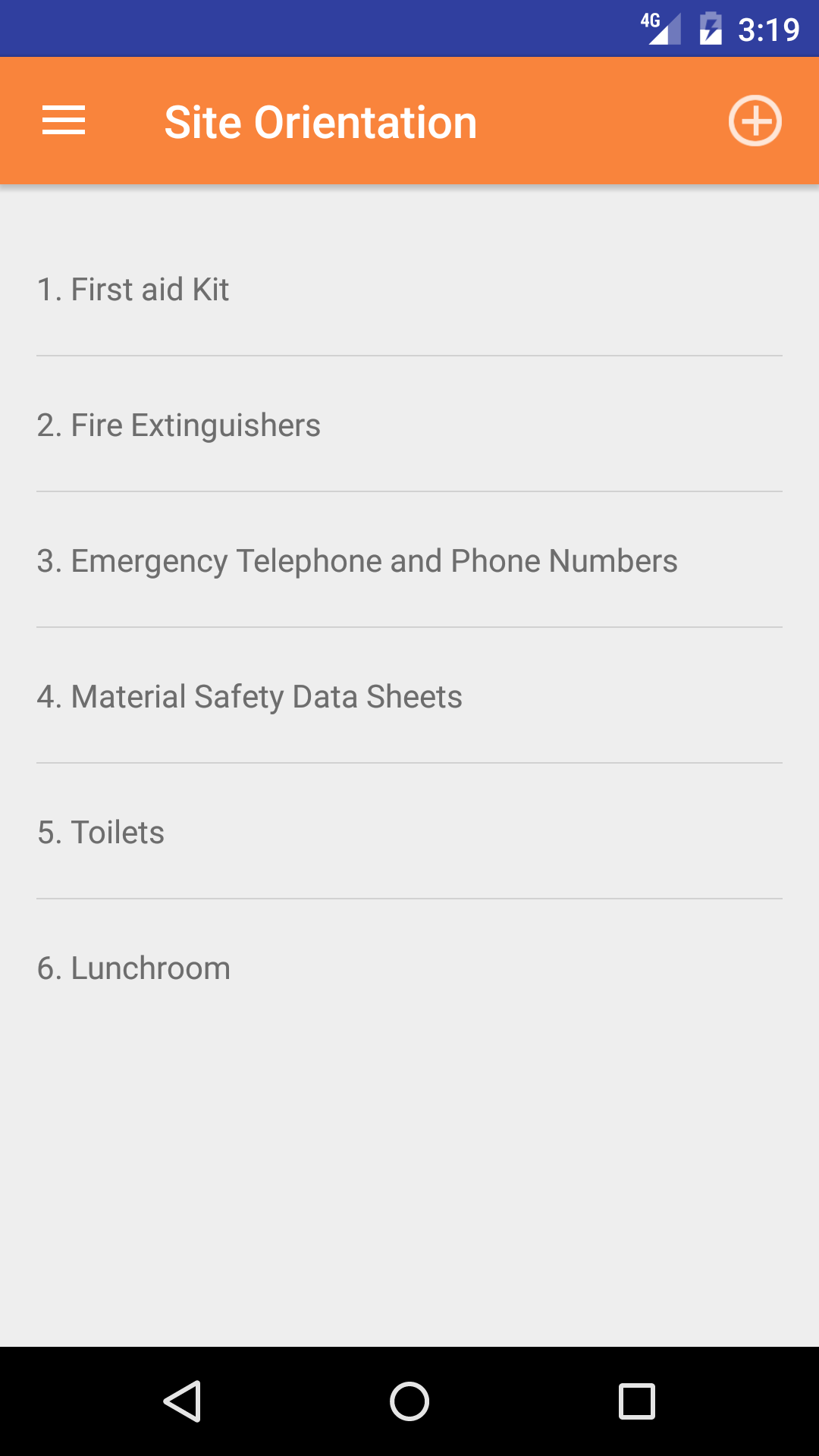 - Tap the + icon in the top right corner to add the Site Orientation.
