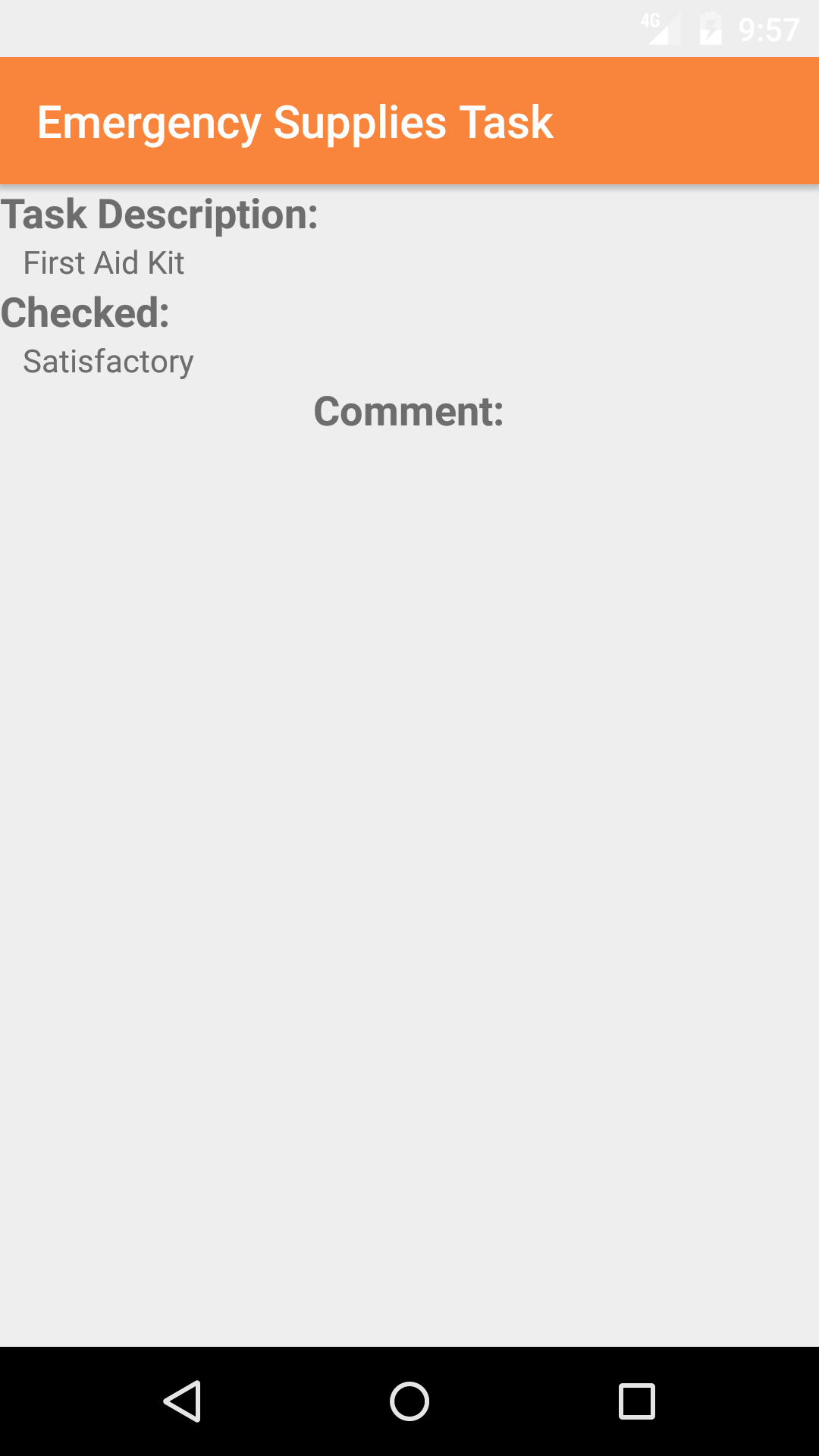- Tap the fourth tab, the Emergency Supplies Inspection Task's tab of the History view. This loads with the emergency supplies inspection task name and the deficiency or