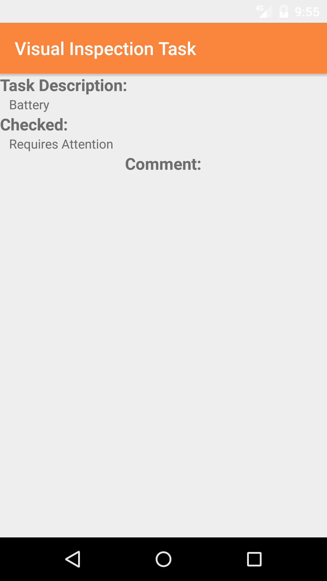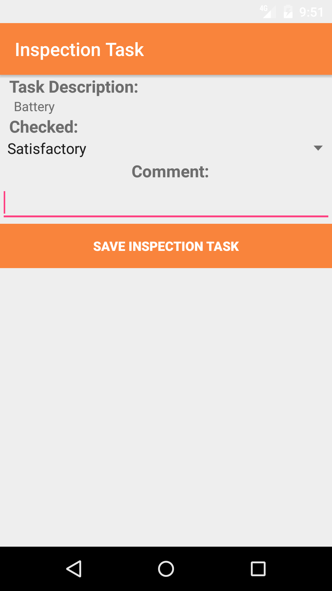 subject of the the inspection task. The user should enter a description or a comment about the problem found. The character limit of this field is 250.